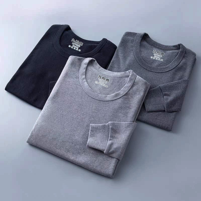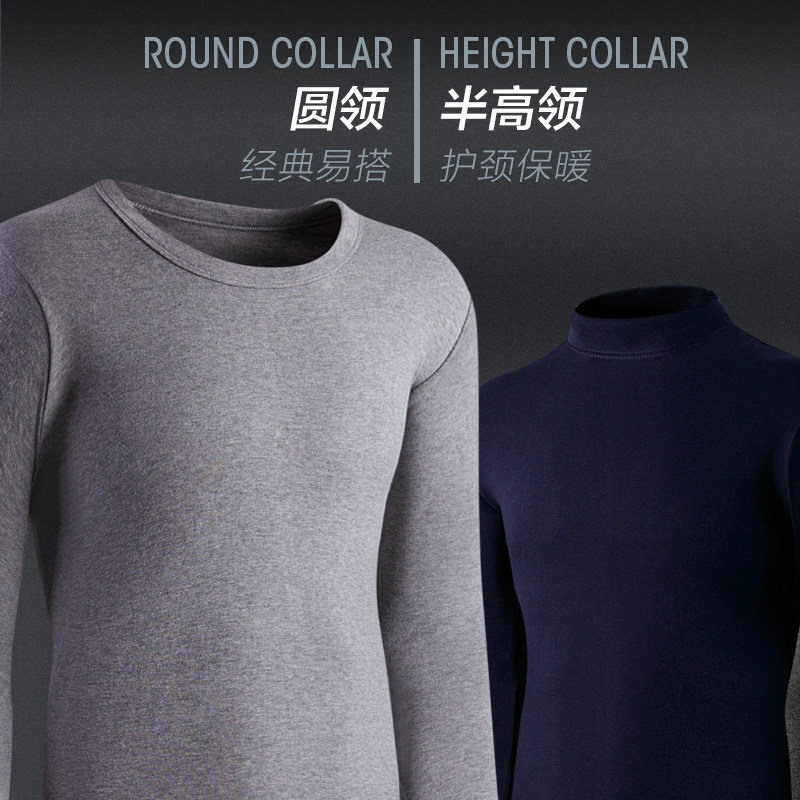 男士单件上衣内衣纯棉秋衣圆领中老年棉毛衫秋冬低领线衣衬衣中厚