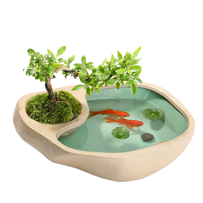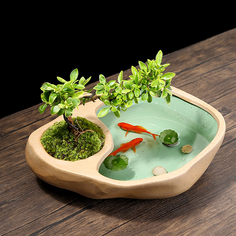 新款陶瓷金鱼缸桌面小型客厅摆件乌龟缸古法小鱼缸睡莲盆荷花盆缸