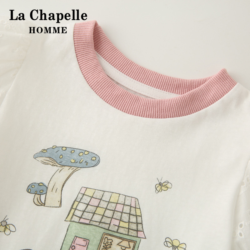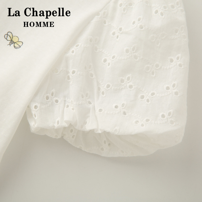 拉夏贝尔女童夏季短袖T恤2025新款儿童宝宝夏日洋气泡泡袖上衣潮