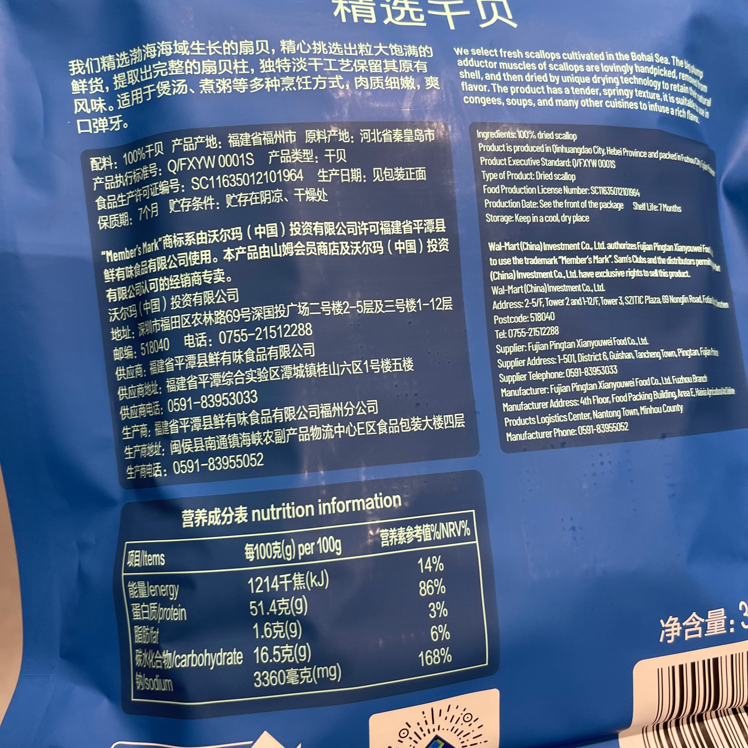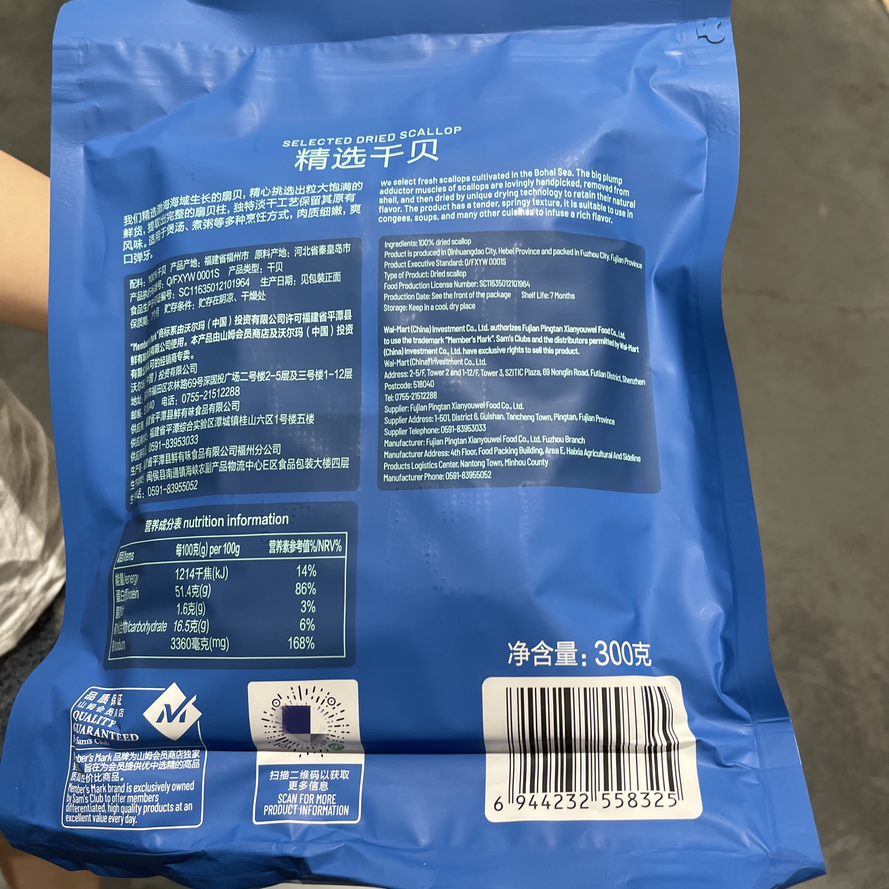 山姆代购精选大干贝瑶柱300g海鲜干货扇贝肉柱肉元贝煮粥煲汤食材