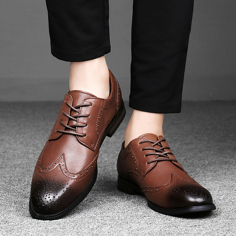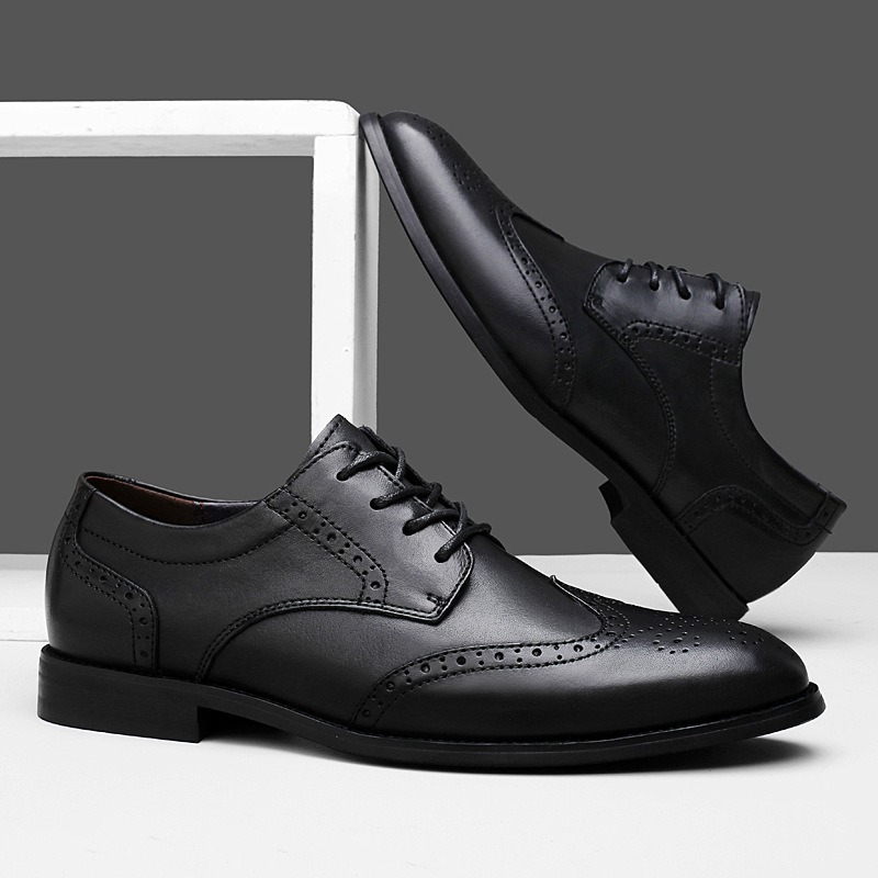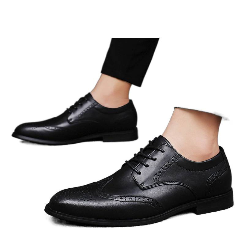 布洛克皮鞋男真皮雕花商务正装德比鞋男士软底增高英伦新郎结婚鞋
