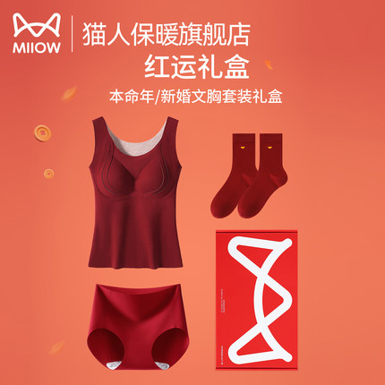 猫人红色保暖背心本命年女士内衣套装带胸垫结婚礼盒送人2026马年