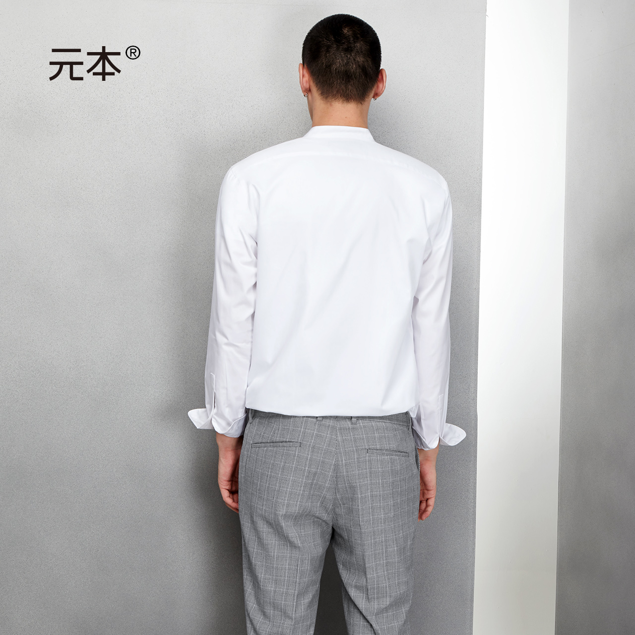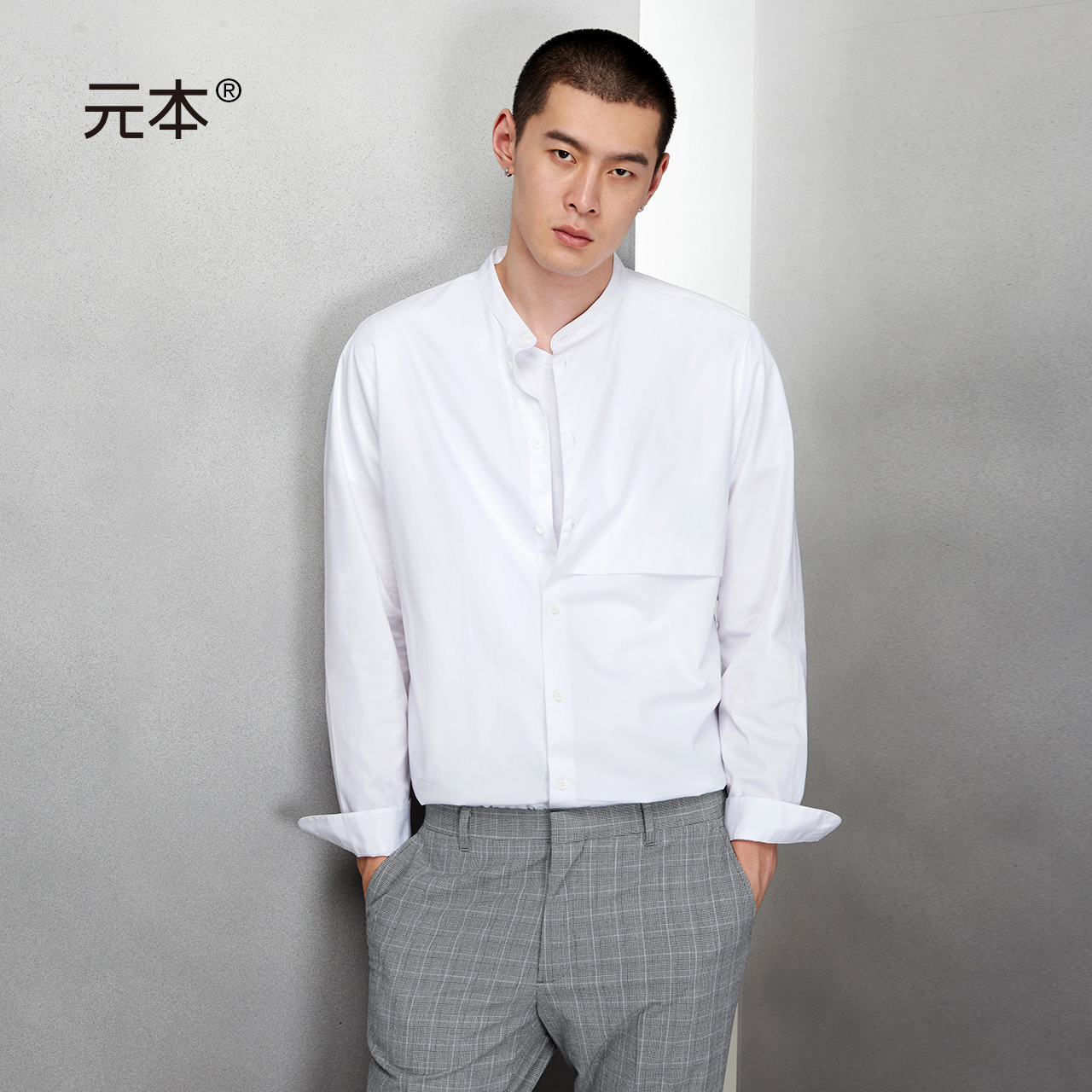 元本 别致双层拼接全棉立领衬衫 男士长袖秋季轻商务休闲潮流衬衣