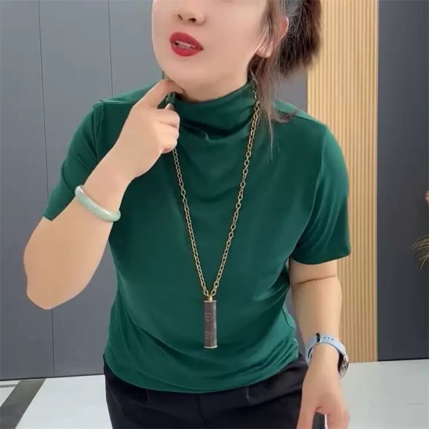 胖MM300斤大码秋冬季纯色短袖打底衫女装百搭德绒保暖半高领T恤衫