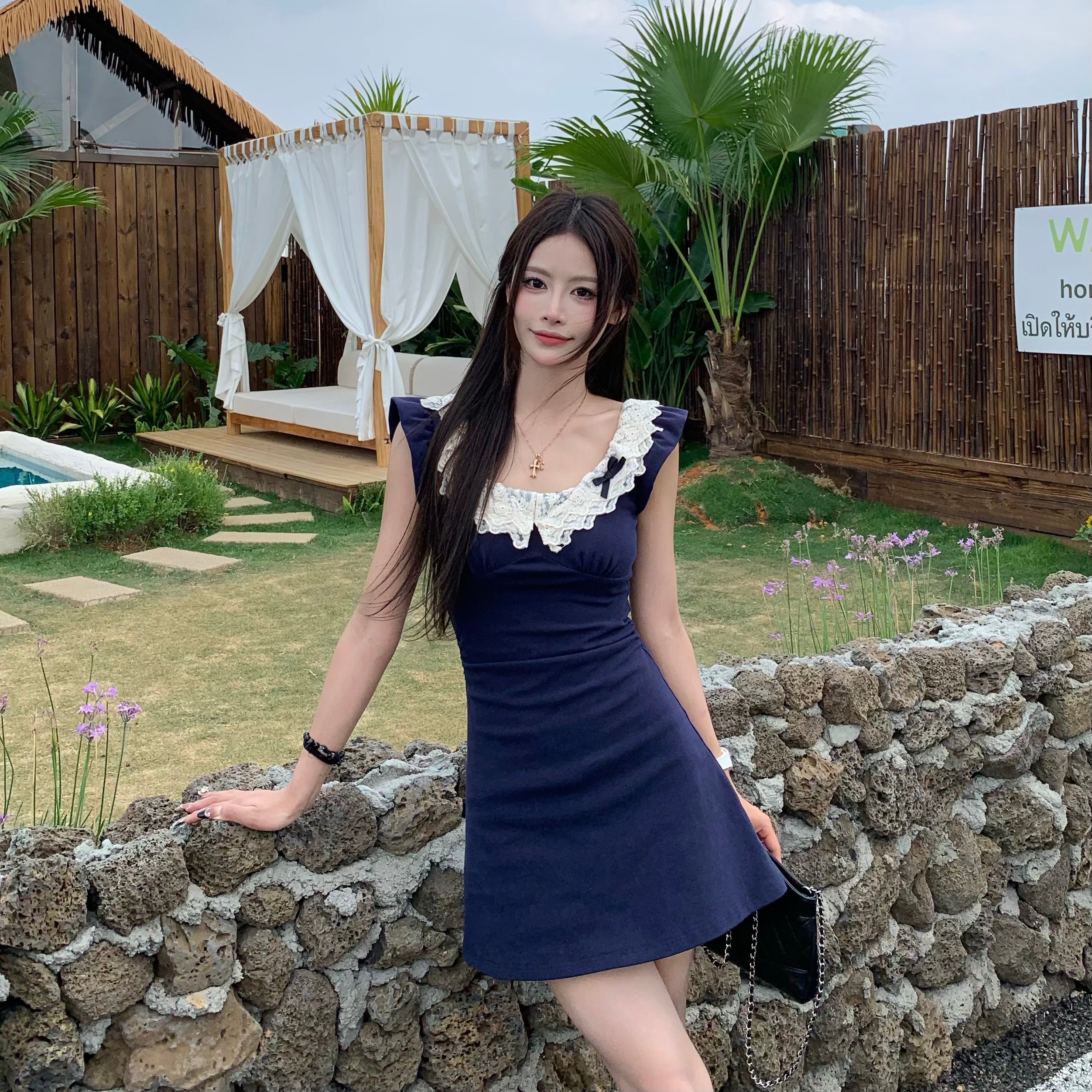3MER长短款纯欲蕾丝显瘦连衣裙