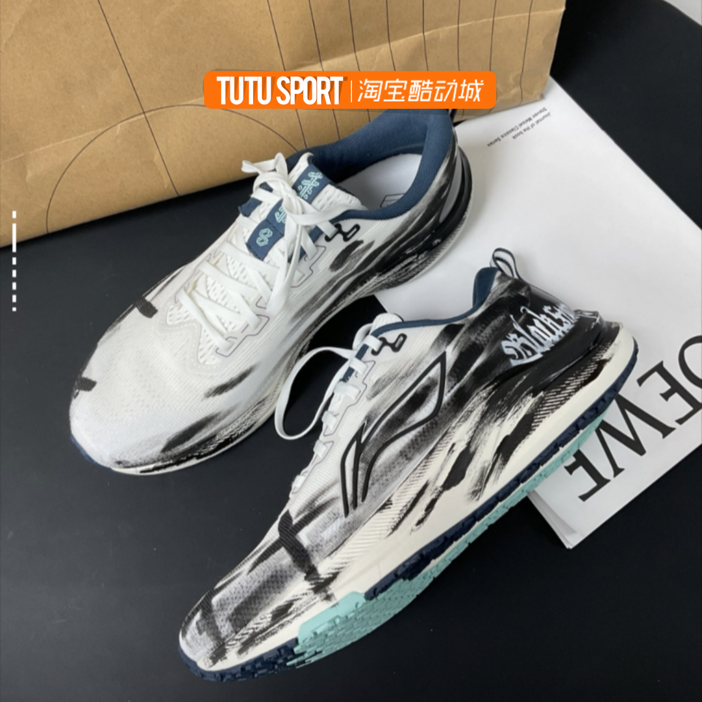 李宁球鞋定制LiNing赤兔8.0 哥特废墟涂鸦泼墨百搭男子低帮跑步鞋