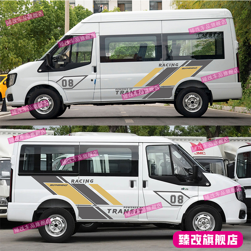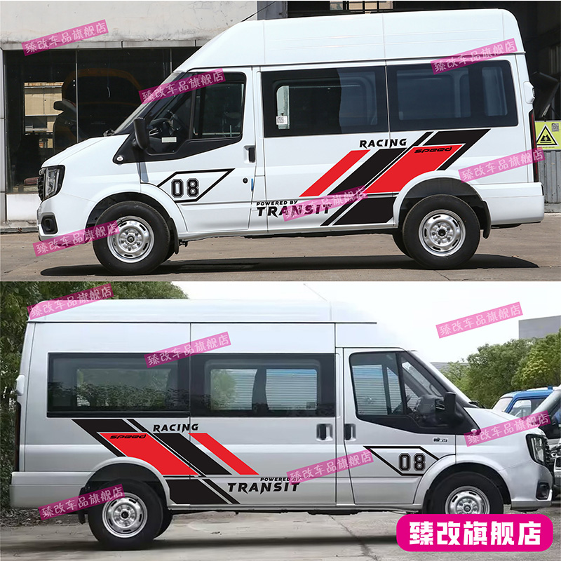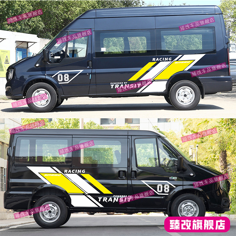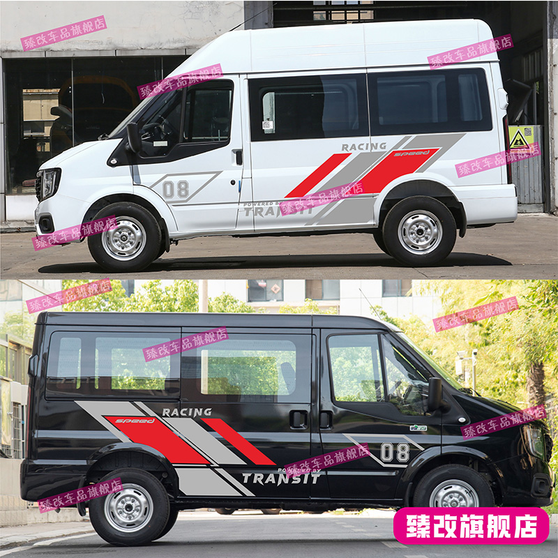 适用江铃福顺车贴拉花 新世代全顺装饰贴纸 赛车个性改装车身彩条