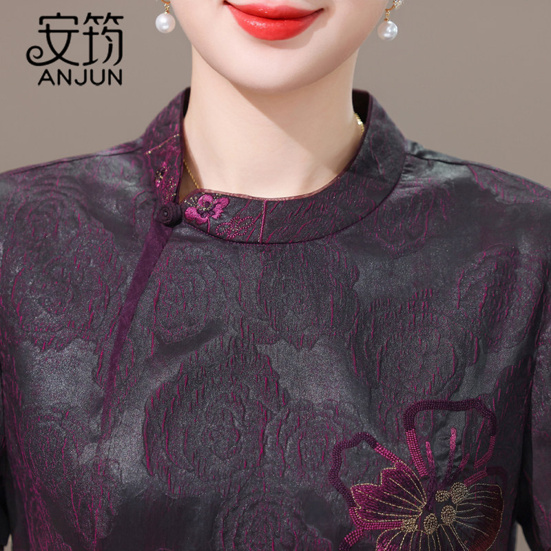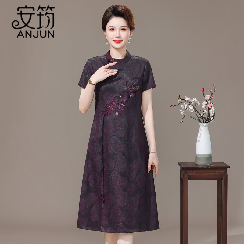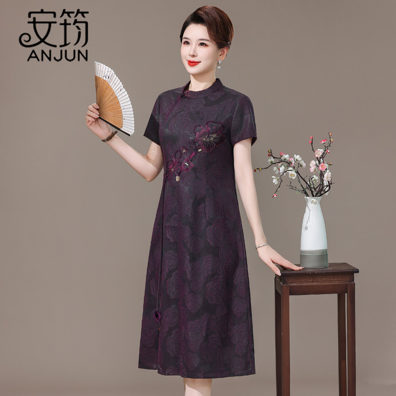 高档香云纱连衣裙女新中式旗袍2025新款优雅妈妈真丝桑蚕丝连衣裙