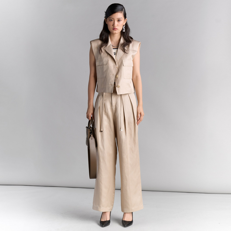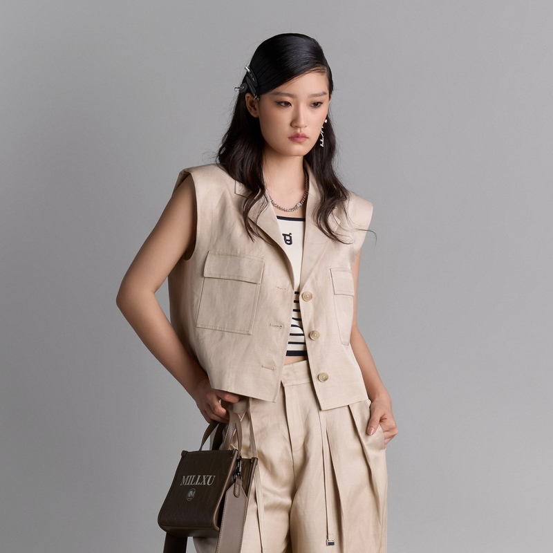U/TI轻透亚麻西装马夹女装百搭通勤无袖休闲上衣尤缇2025夏季新款
