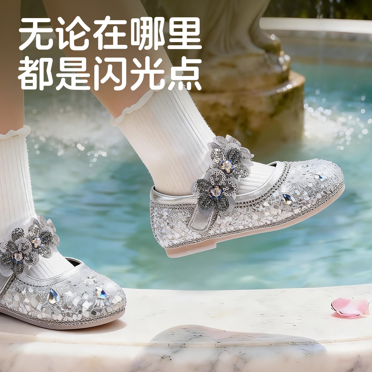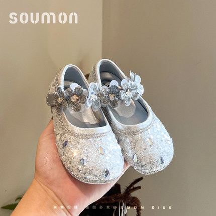 书萌女童公主鞋2026春秋新款亮片水钻玛丽珍鞋时尚百搭洋气演出鞋