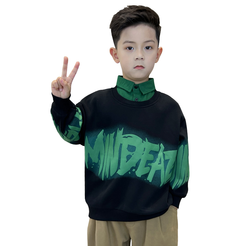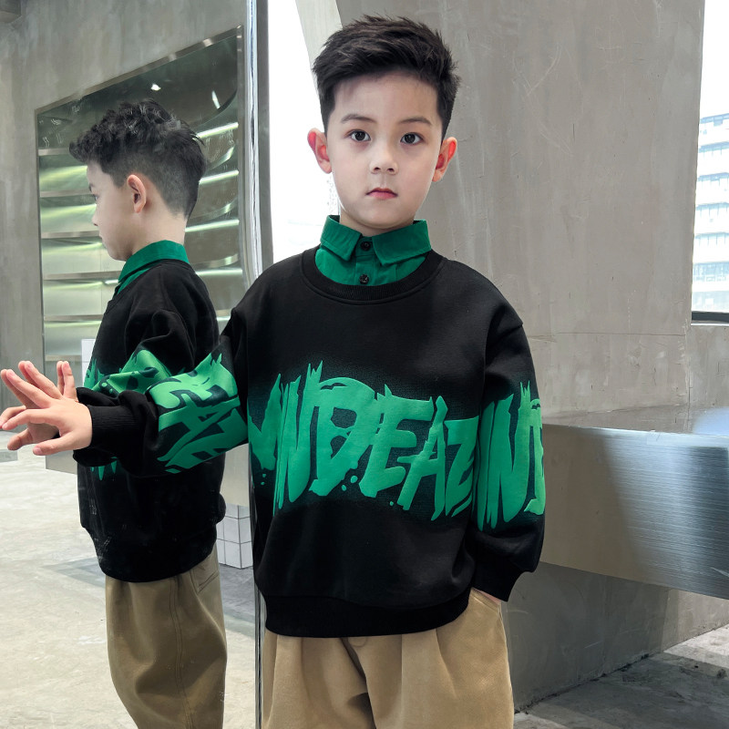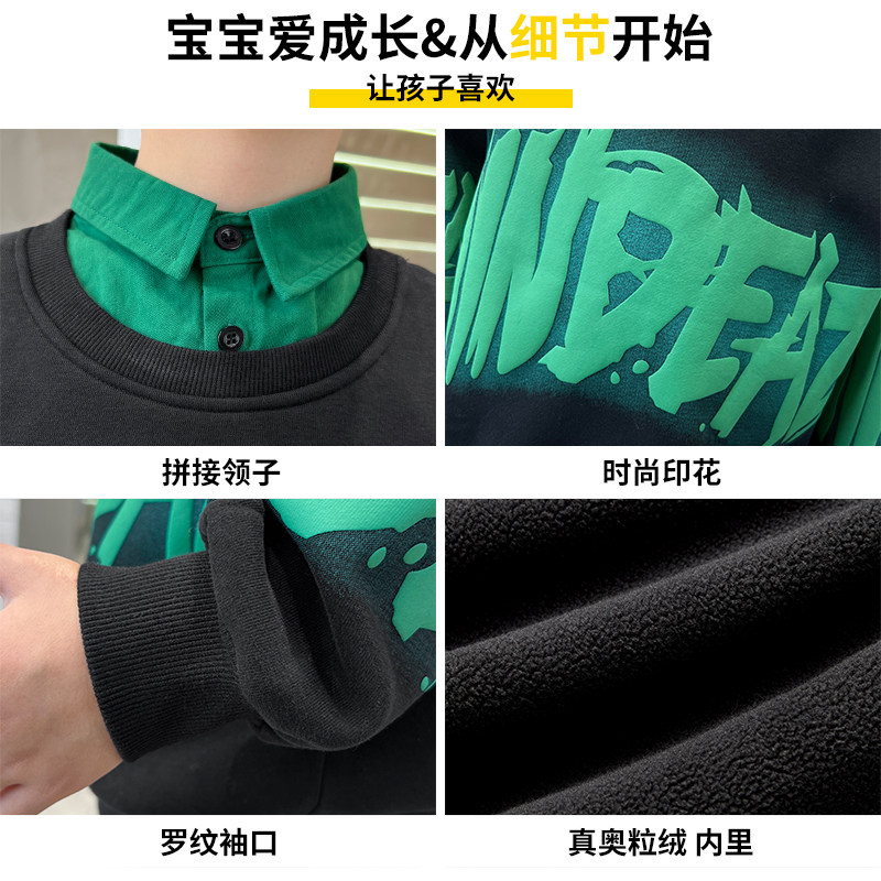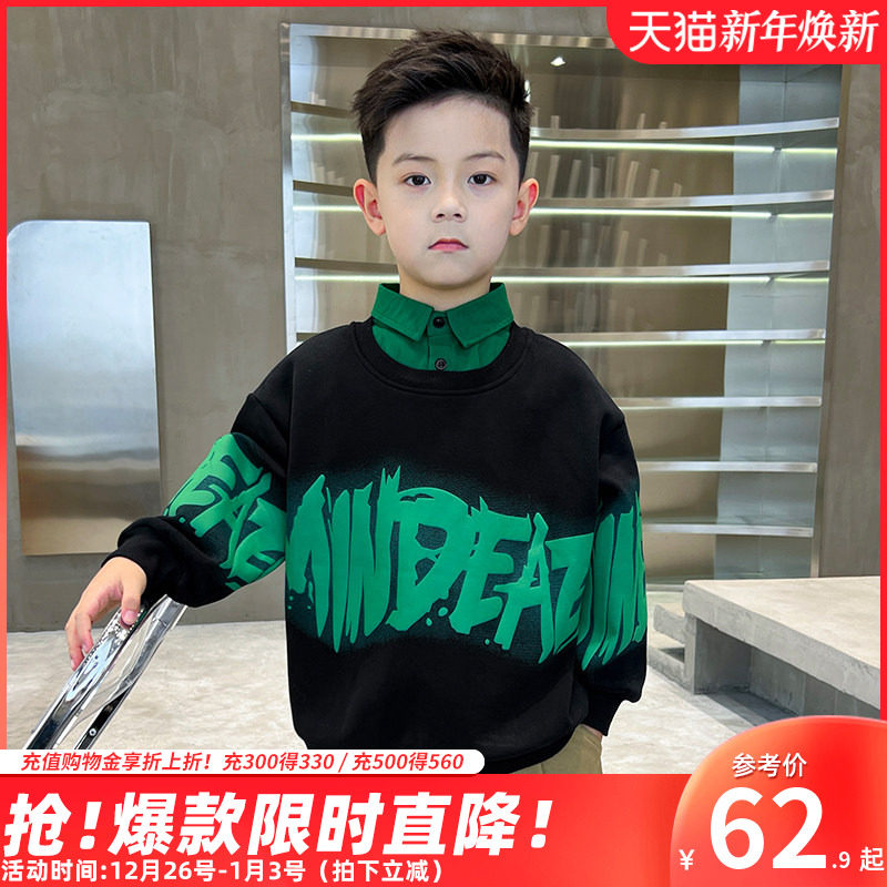 男童宽松假两件卫衣2025休闲洋气韩版秋冬装中大童潮流儿童春秋季