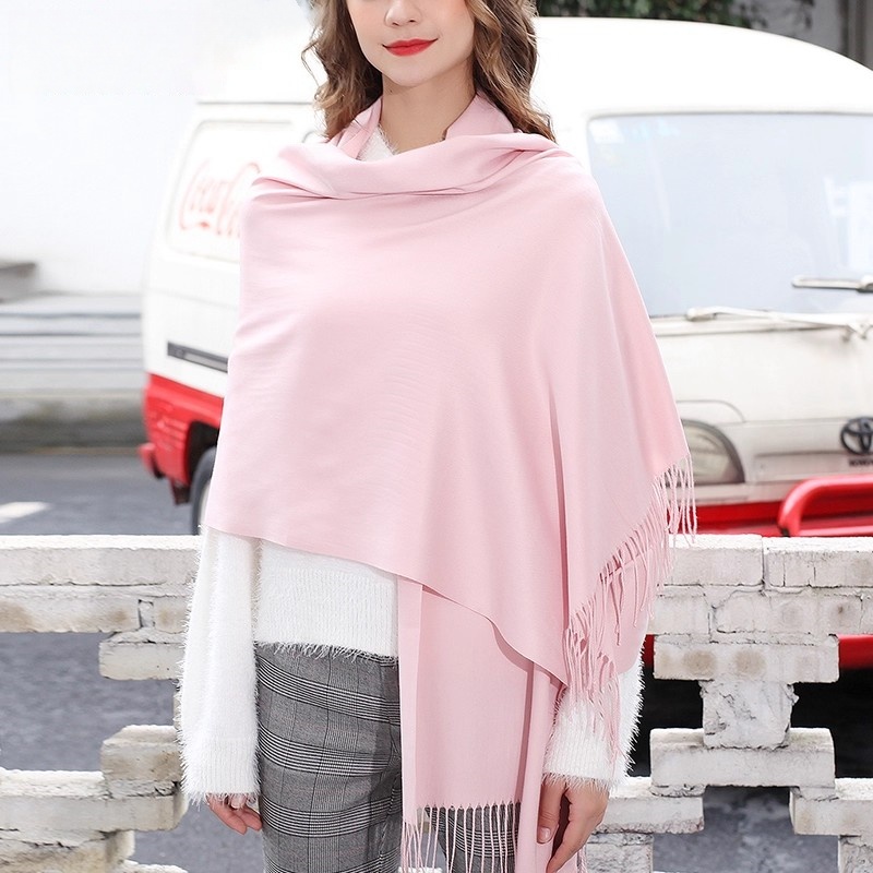 达芬奇密码围脖保暖仿羊绒围巾女冬款薄韦巾新款粉色伴娘披肩冬季