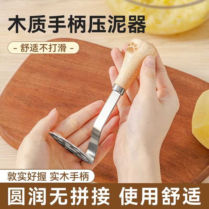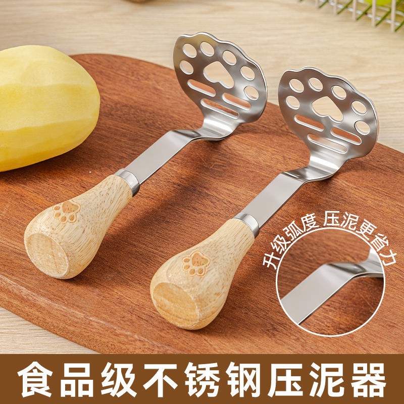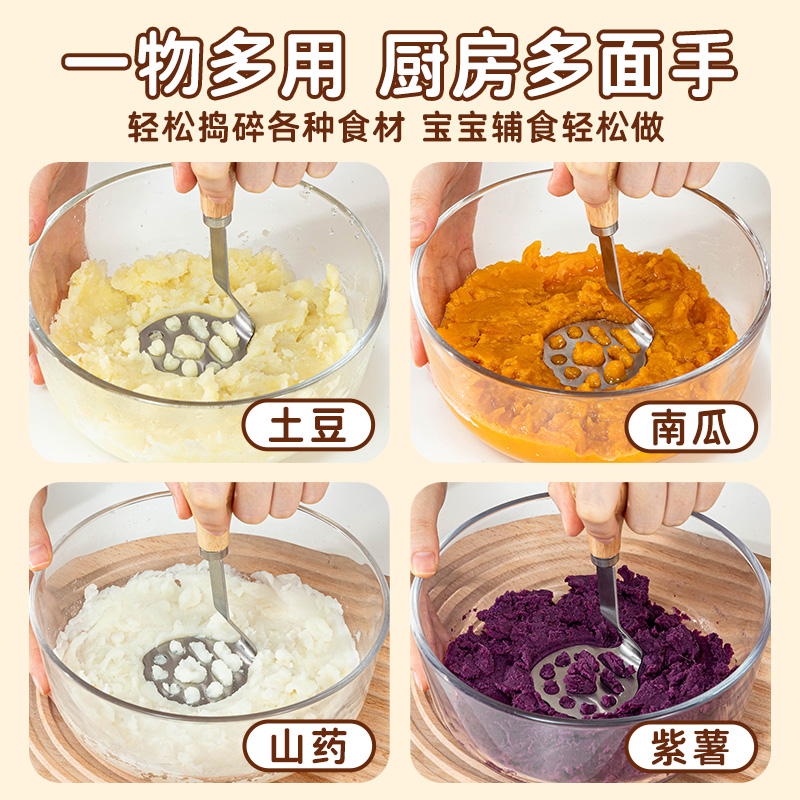 土豆压泥器婴儿辅食捣泥按压神器食品级不锈钢小熊食物压碎碾碎勺