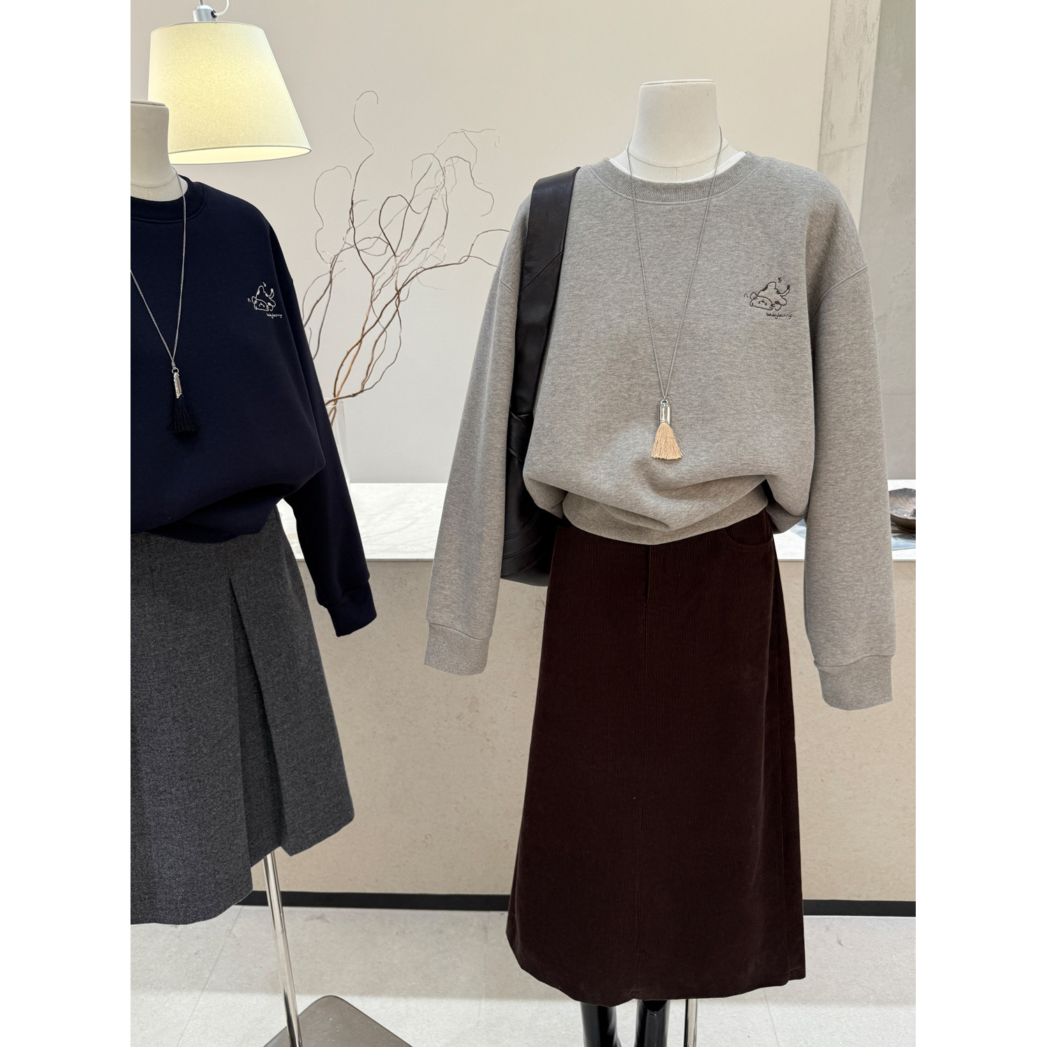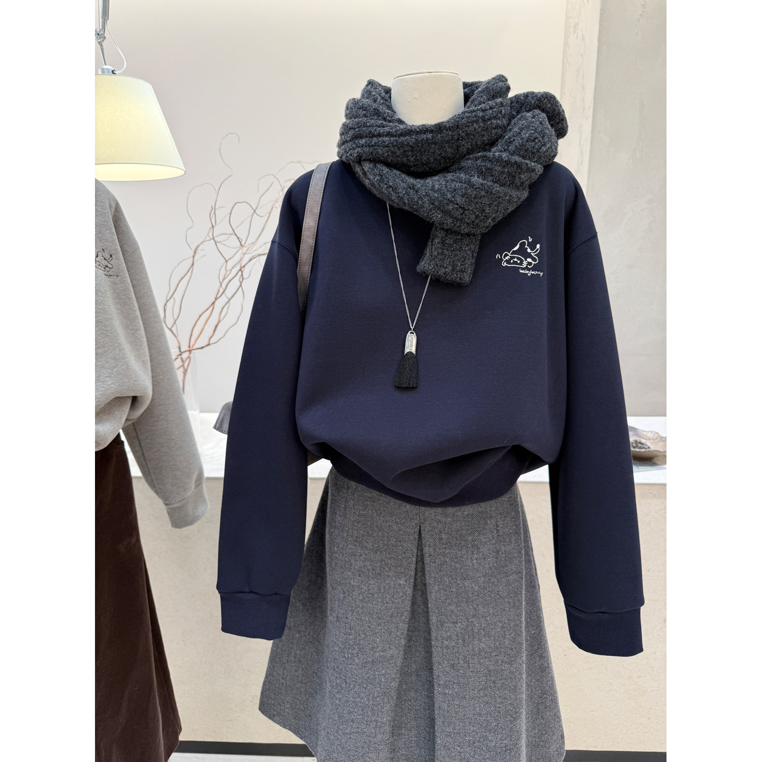 韩系刺绣圆领长袖加绒加厚卫衣