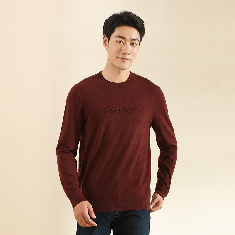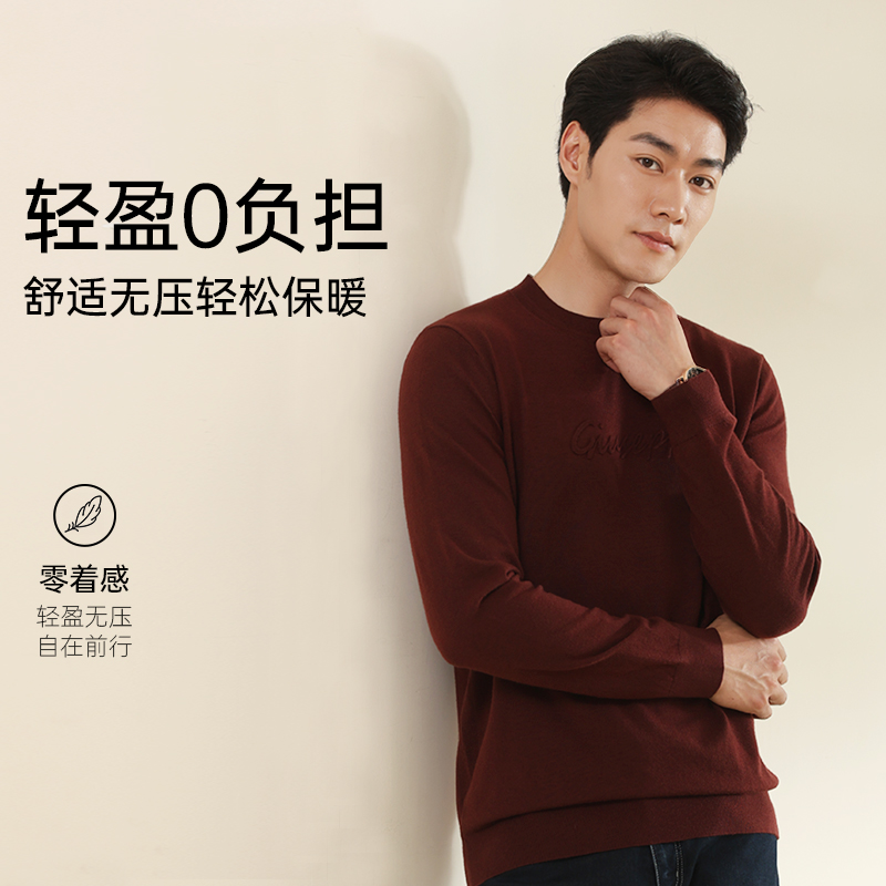 乔治白男装圆领绵羊毛衫24年秋冬新款针织衫简约保暖打底上衣