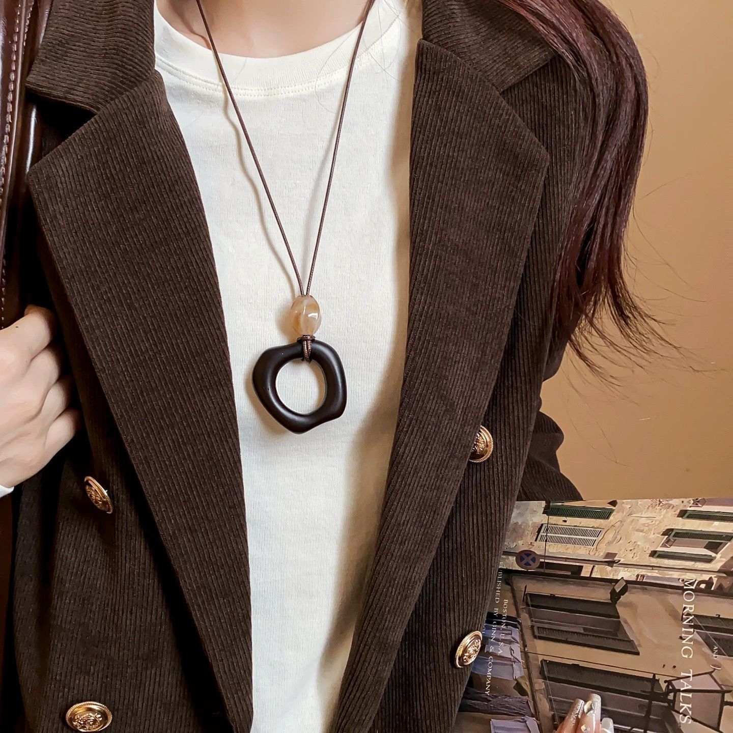 新中式椭圆几何项链女2025新款民族风复古小众配饰吊坠挂脖毛衣链
