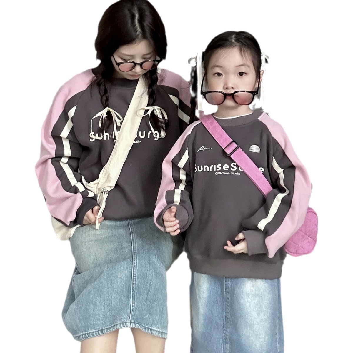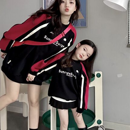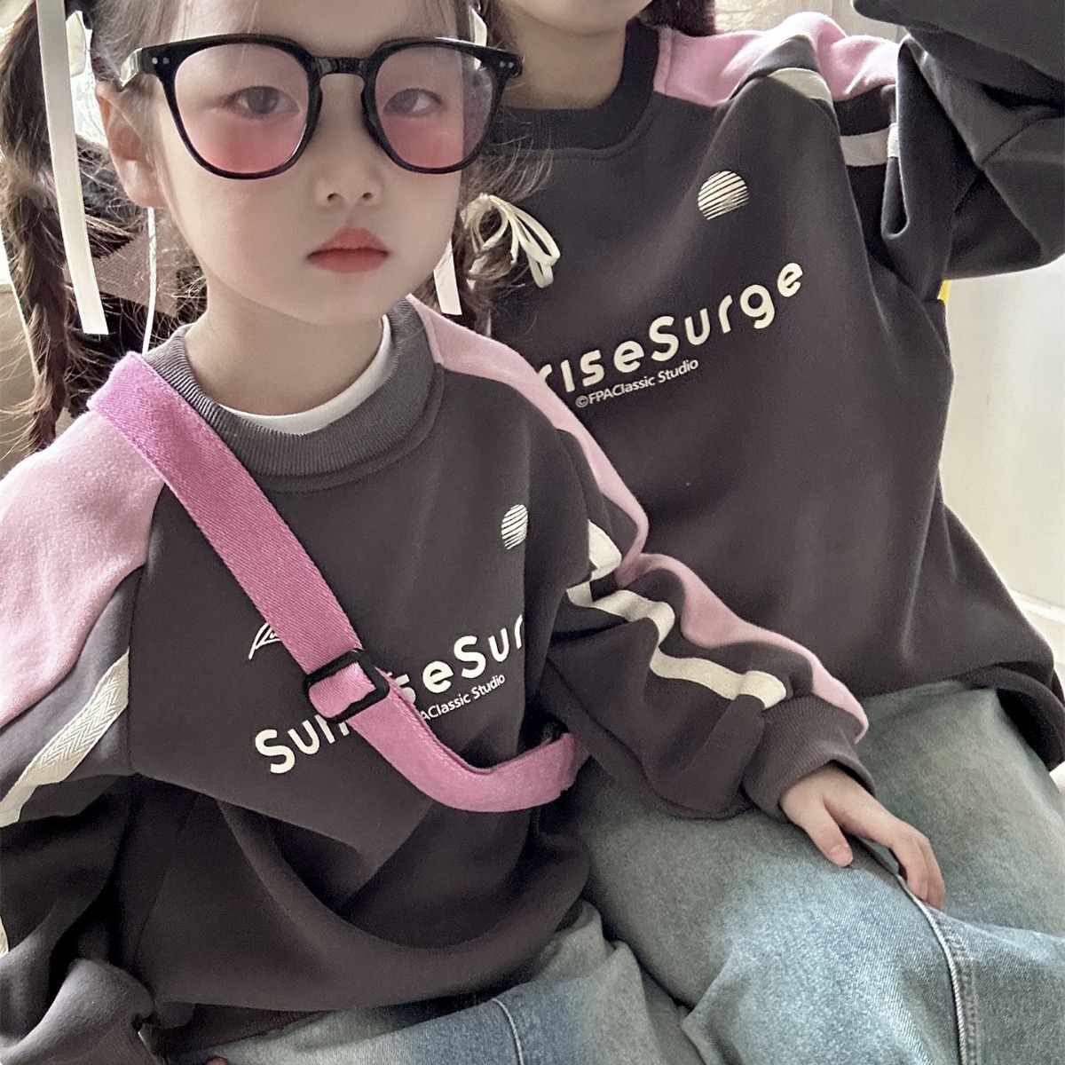 外贸男童女童冬季加绒酷飒机车风亲子装卫衣全家装亲子装卫衣