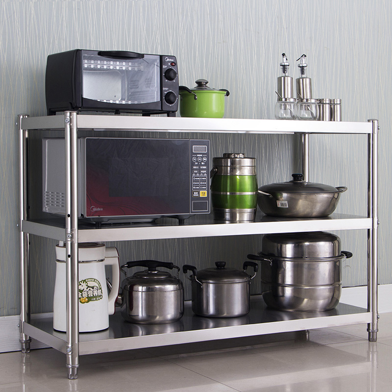 厨房置物架 不锈钢落地架烤箱架微波炉3层架锅碗蔬菜架厨房收纳架