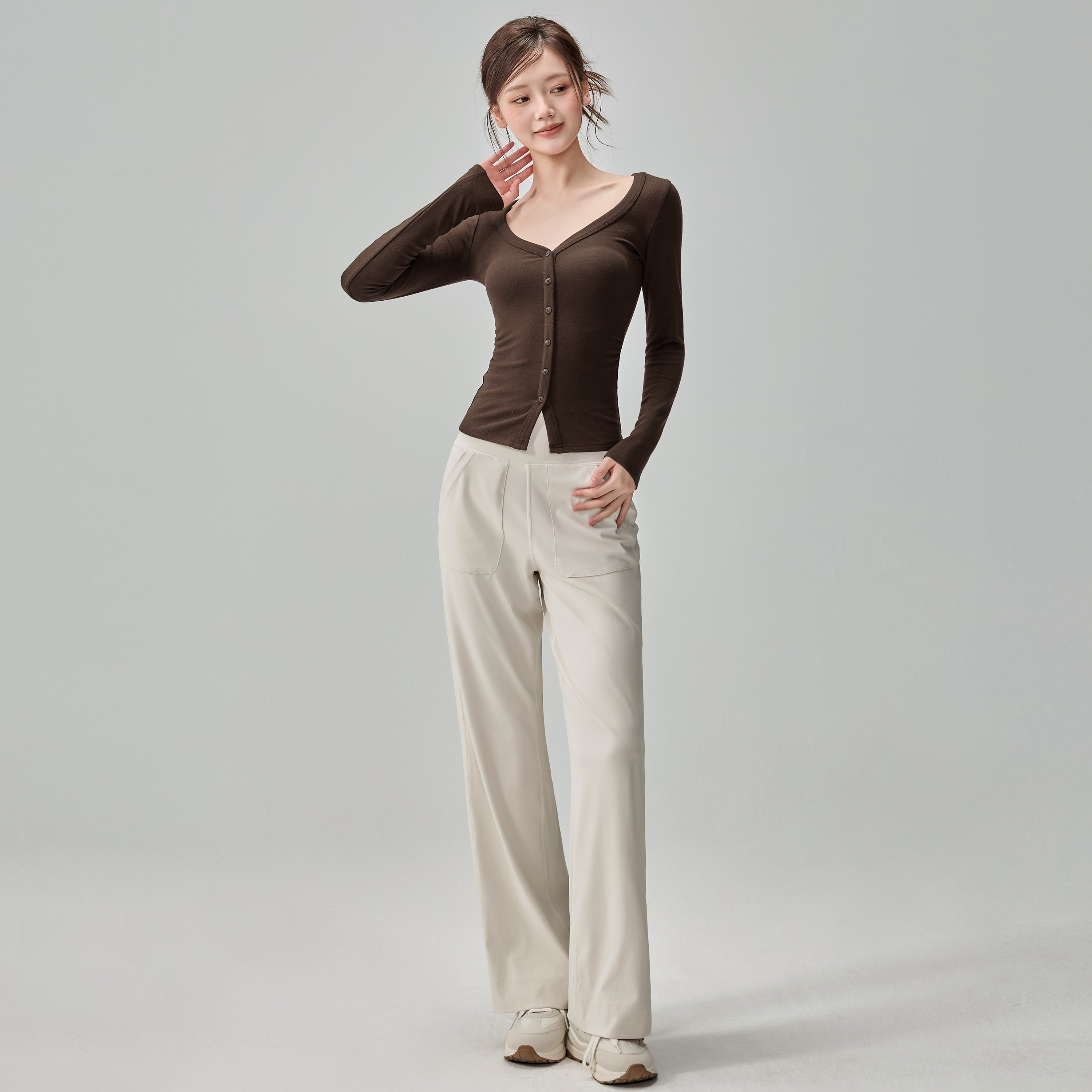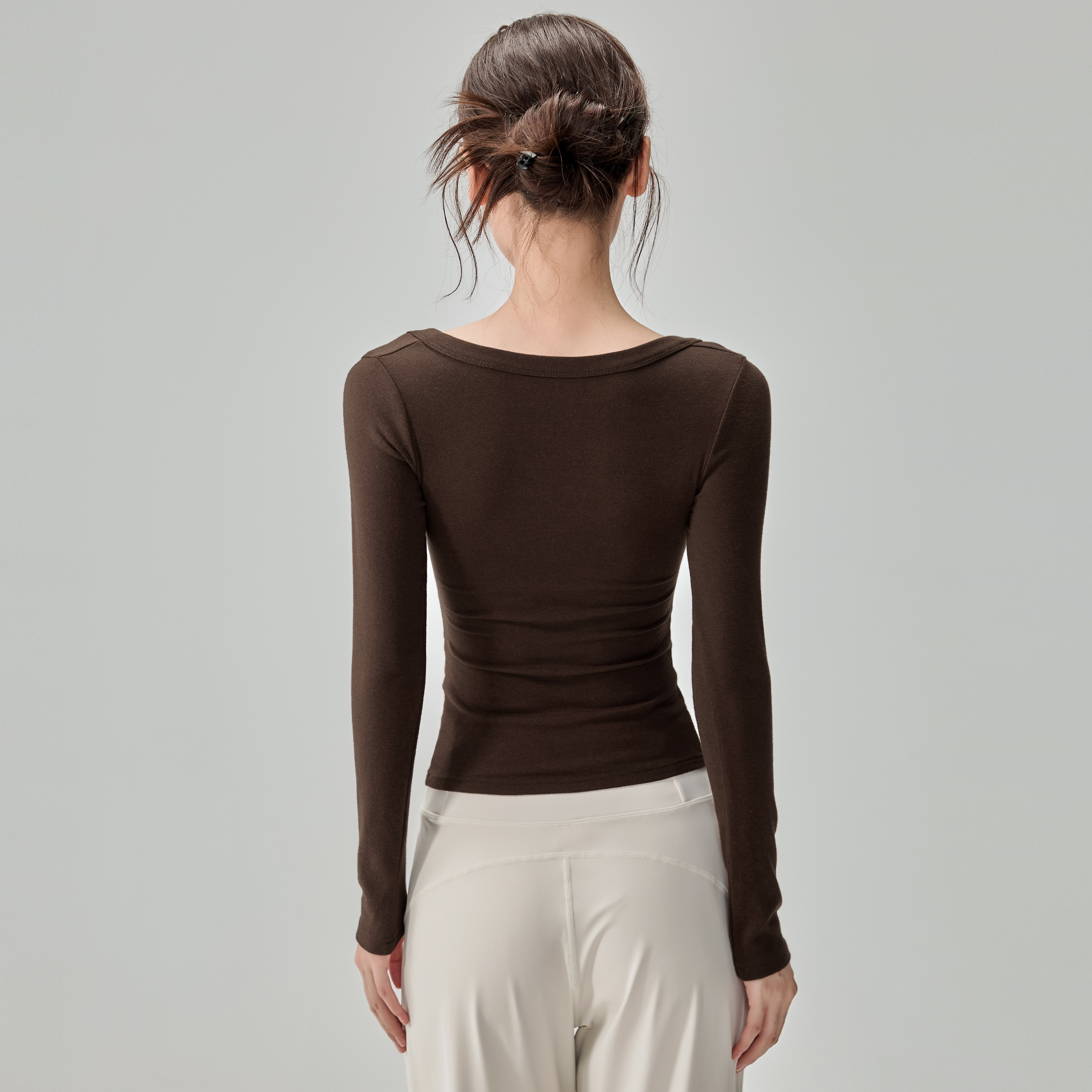岚纹气质瑜伽服女V领打底衫显瘦训练普拉提健身上衣运动长袖t恤新