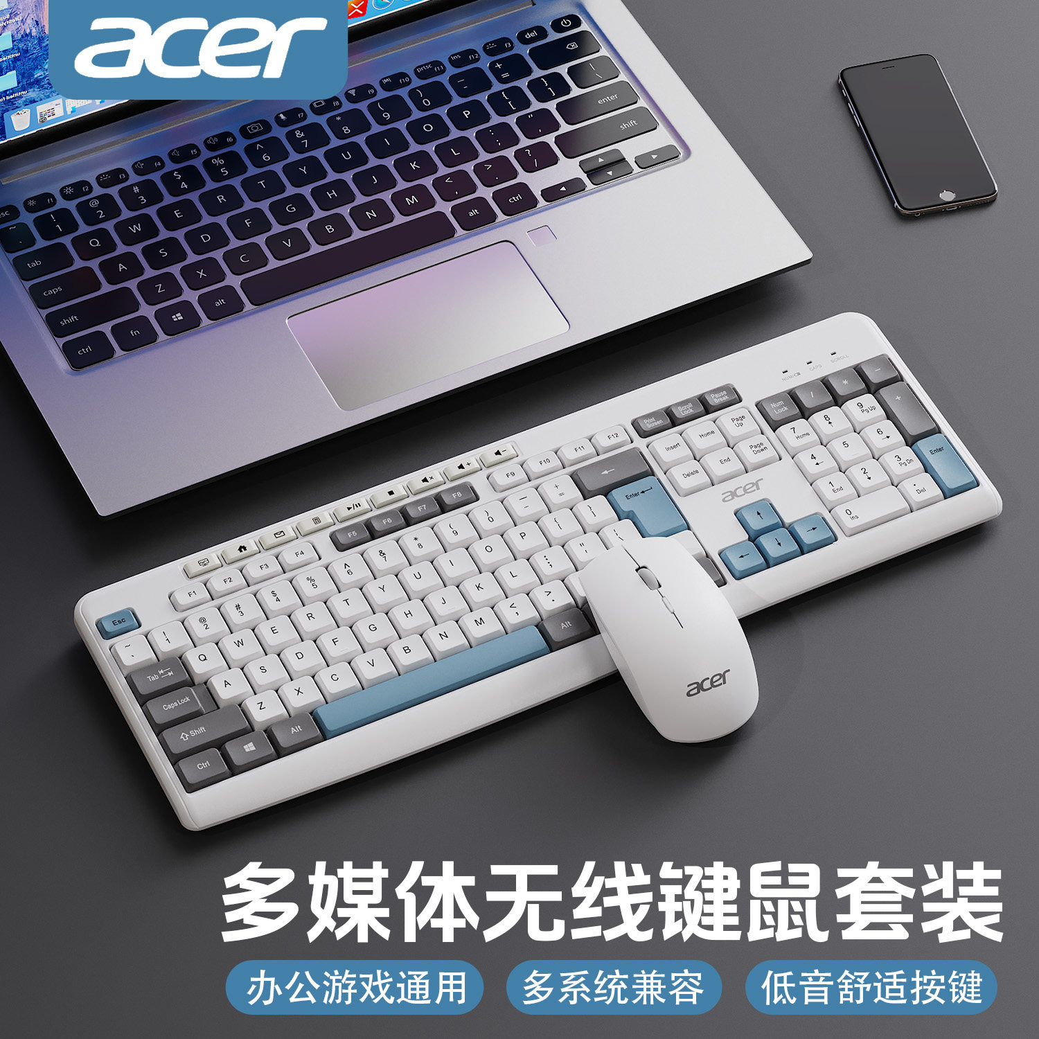 acer宏碁无线键盘鼠标套装打字静音拼色办公台式电脑笔记本通用