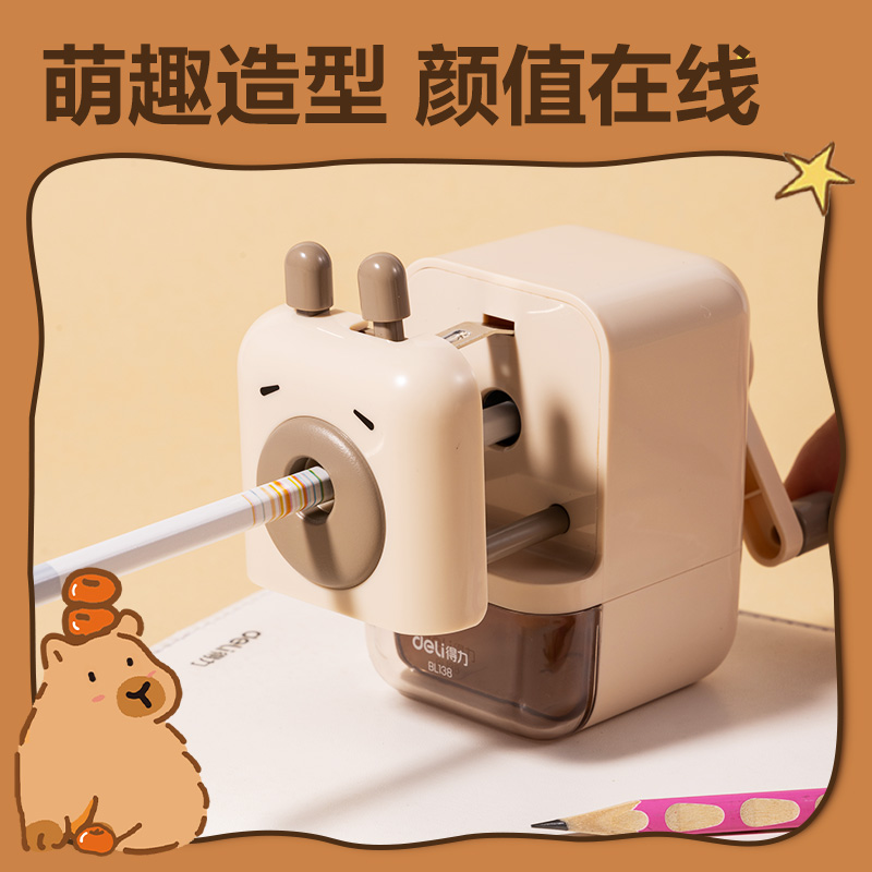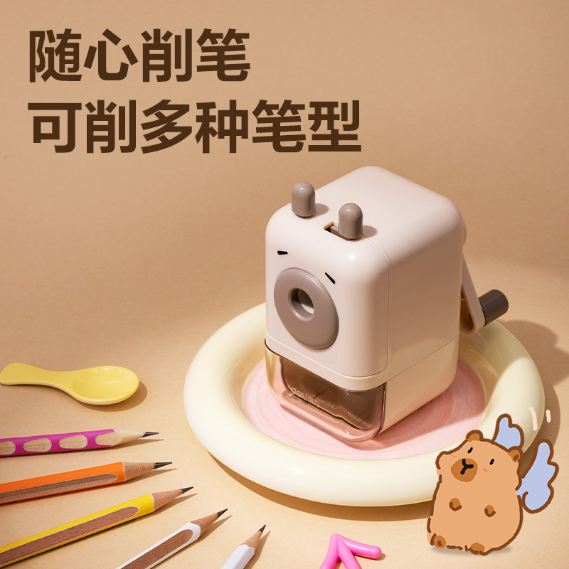 得力卡皮巴拉手摇卷笔刀粗细铅笔削笔器小学生专用转笔刀削铅笔器