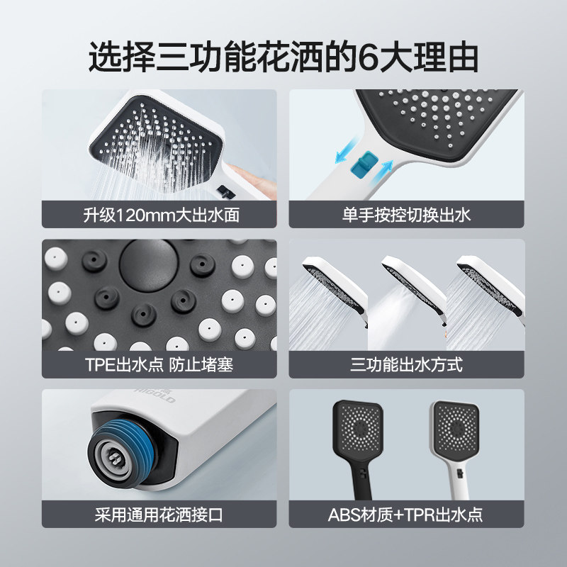 悍高花洒喷头淋浴莲蓬单头增压大手持式花洒卫浴浴室方形加压套装