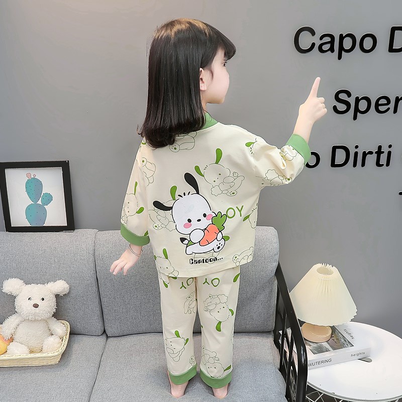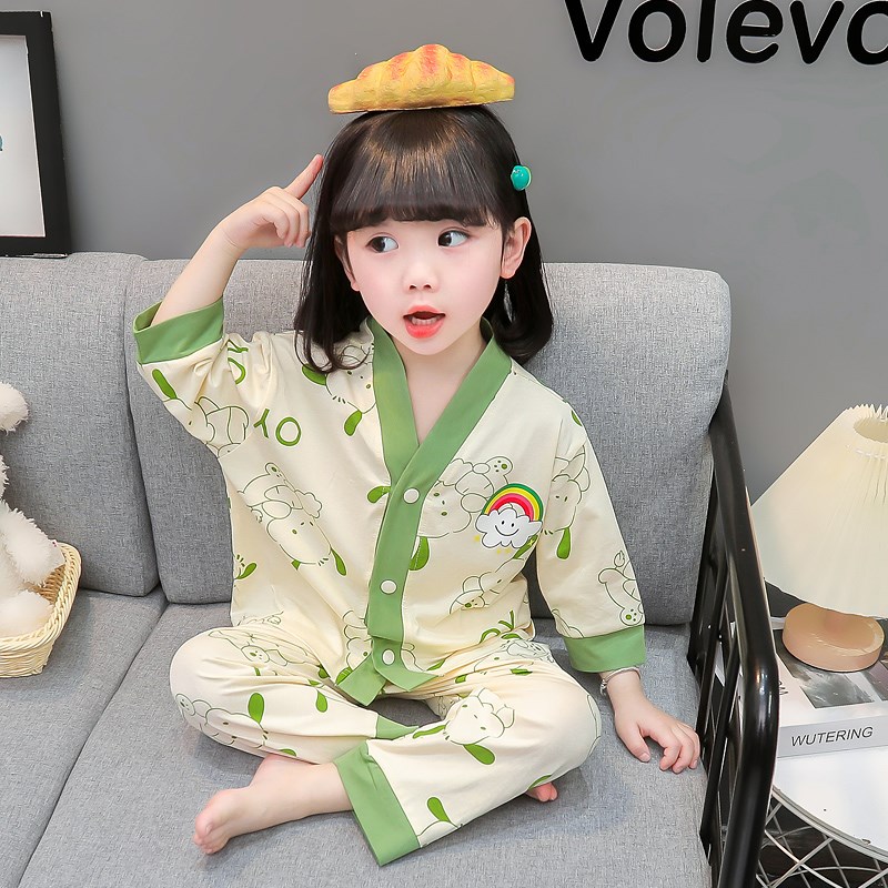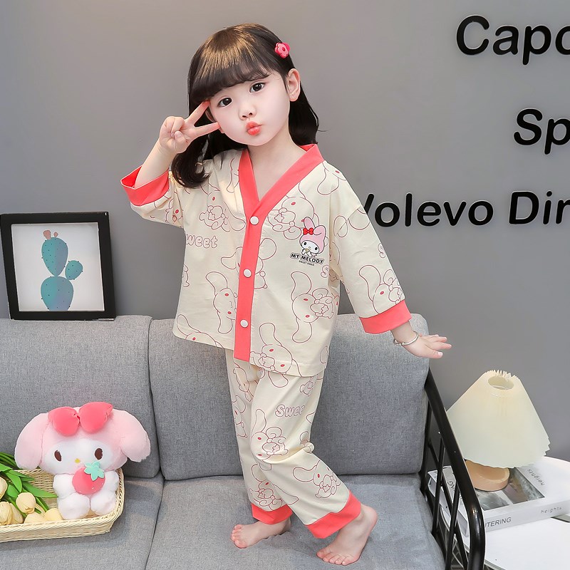 女童睡衣春夏季纯棉九分袖薄款2024儿童女孩夏款中小童套装家居服