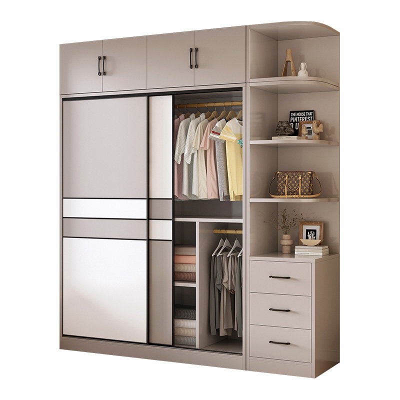 衣柜家用卧室小户型简易柜子推拉门出租房用储物实木生态板大衣橱