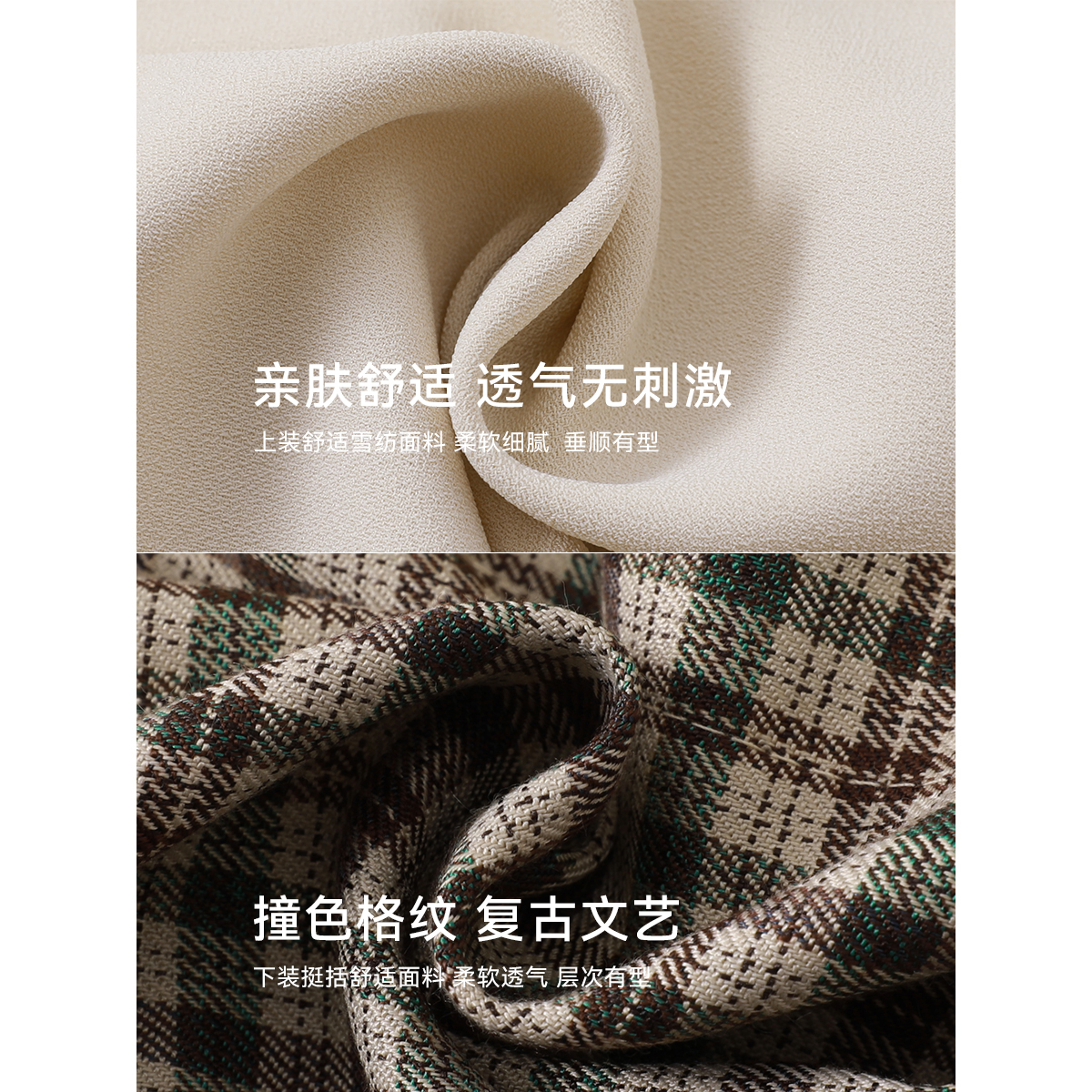 沫晗依美质感格子裙套