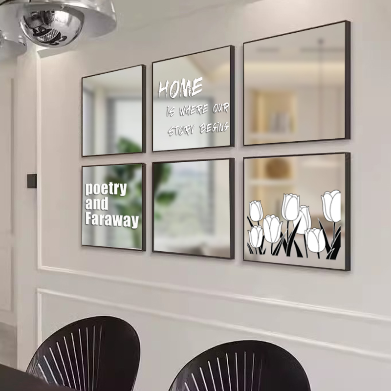 方形拼接镜子客厅餐厅墙面装饰镜玄关镜子软装壁挂金属镜子装饰画