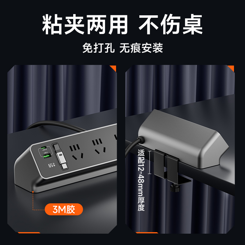 舒享65w智能夹桌充电站桌面氮化镓排插快充插座电竞usb快充接线板
