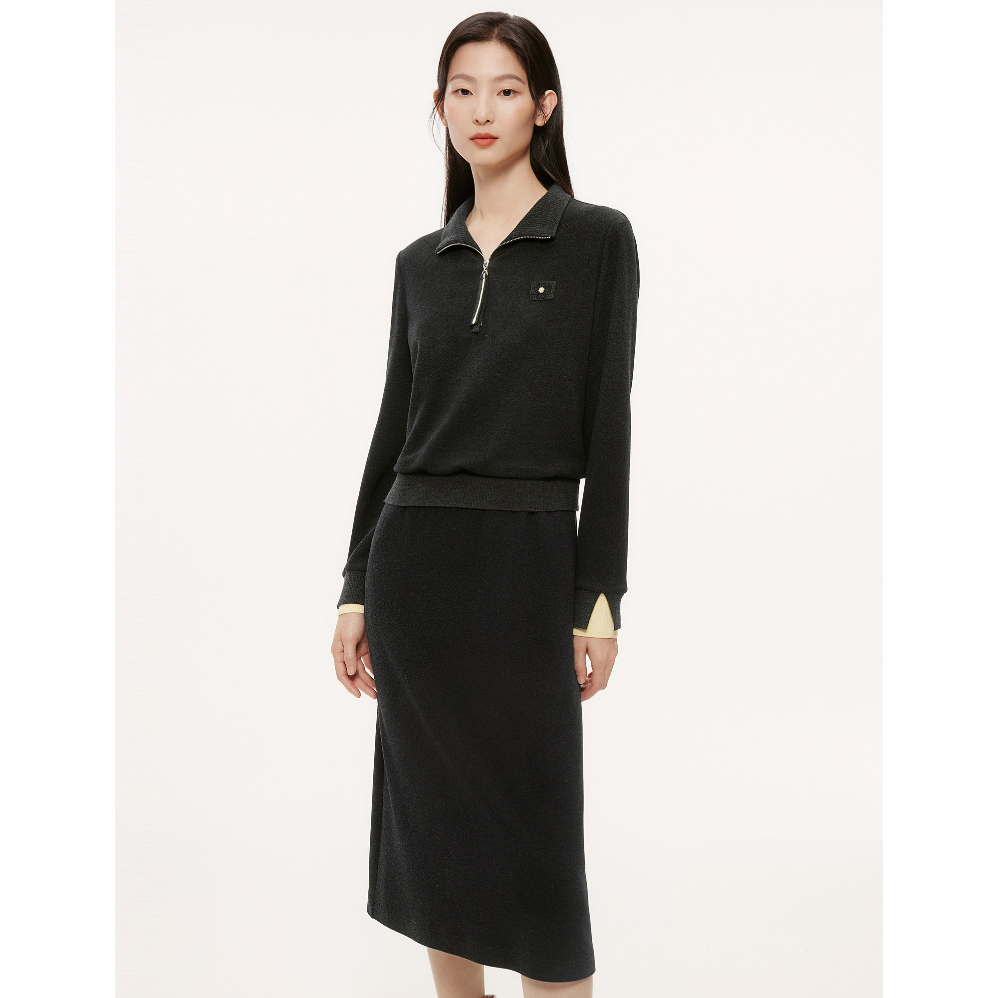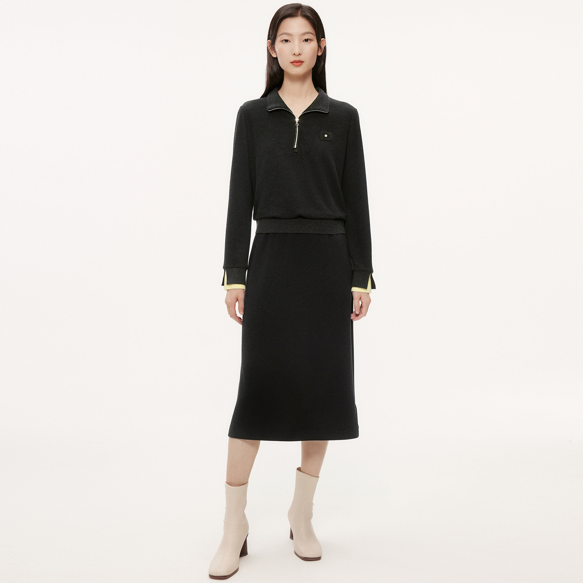 ELSEWHERE珂思【商场同款】假两件套装直筒连衣裙女2025秋季新款