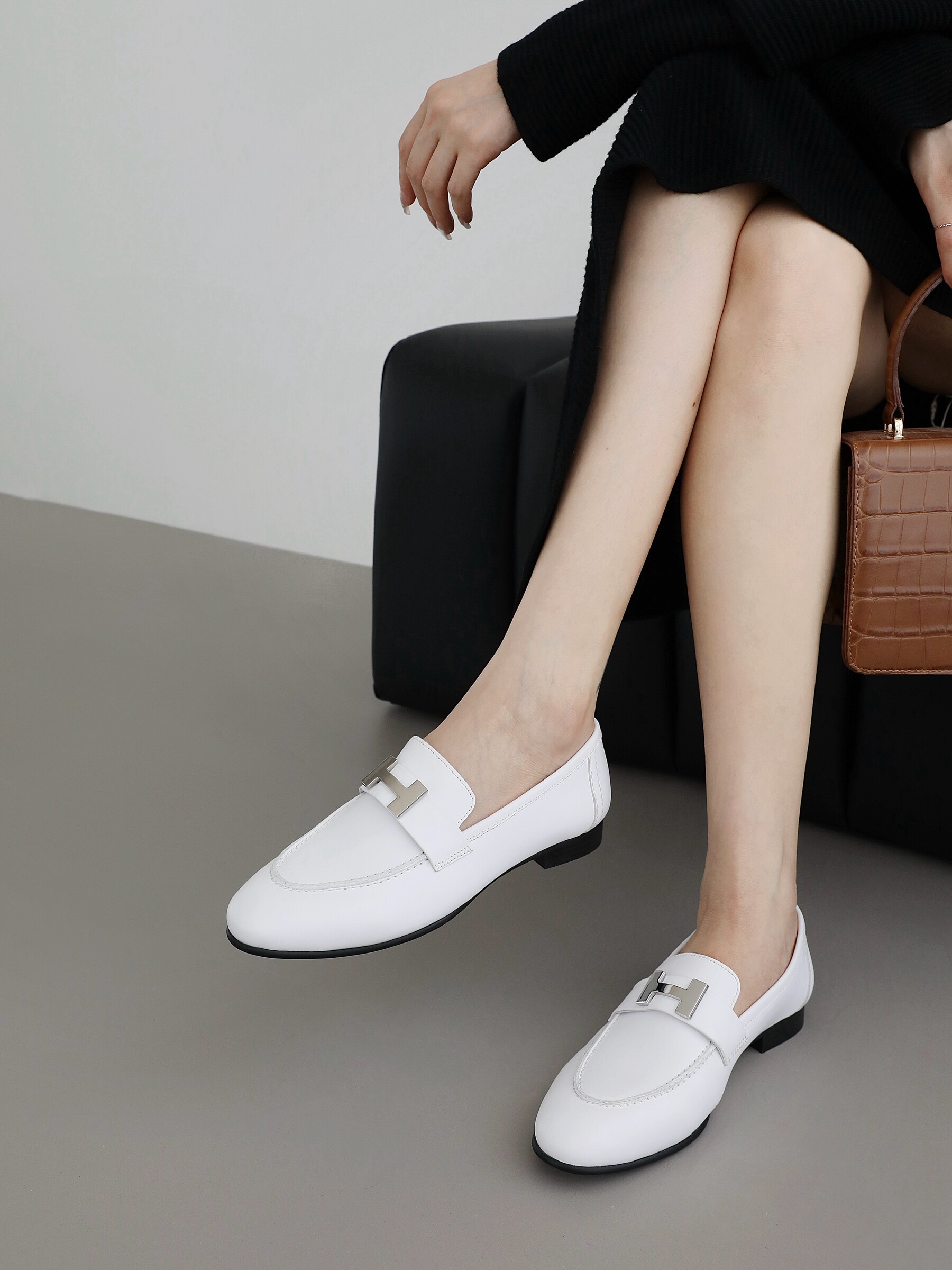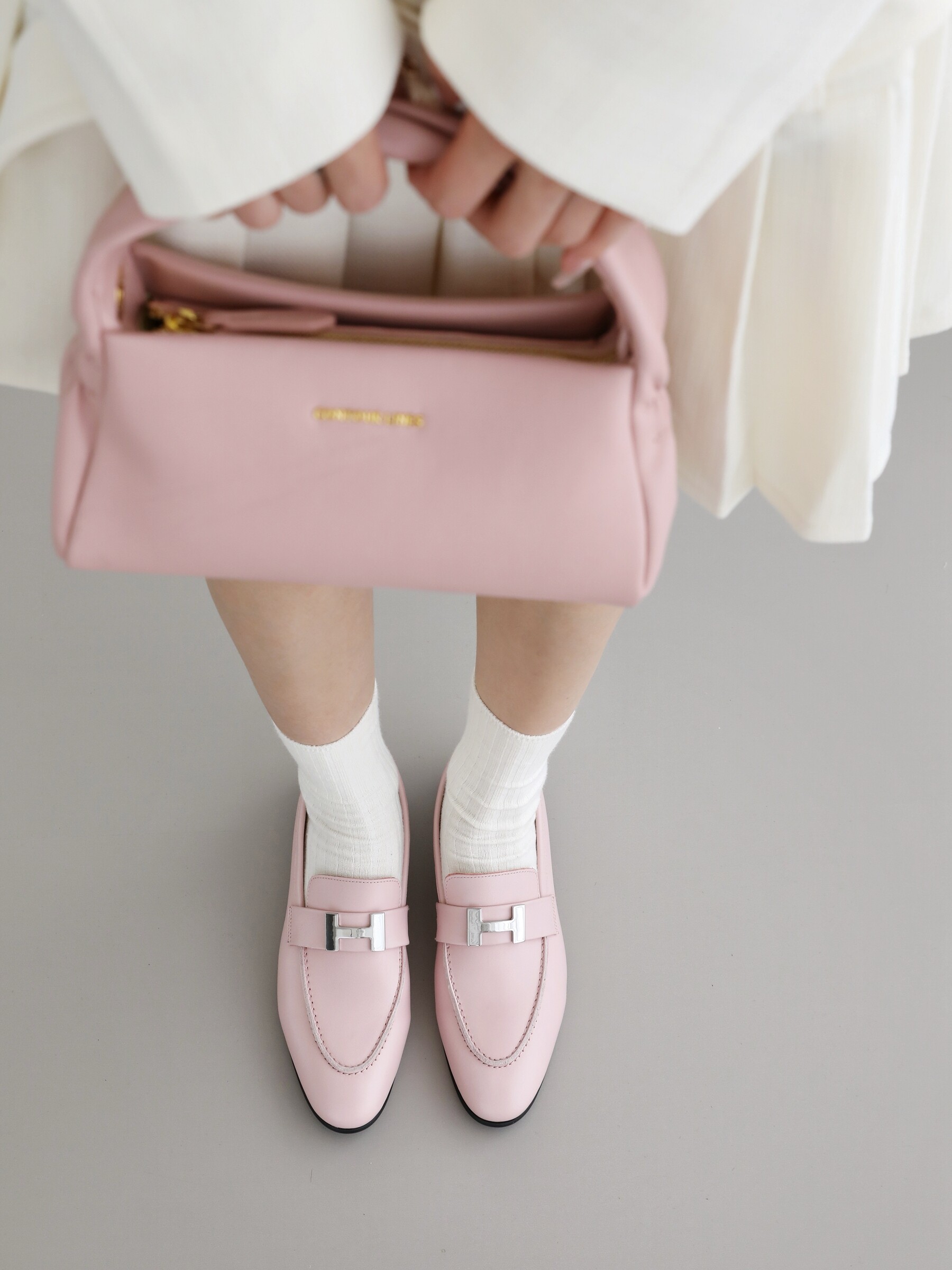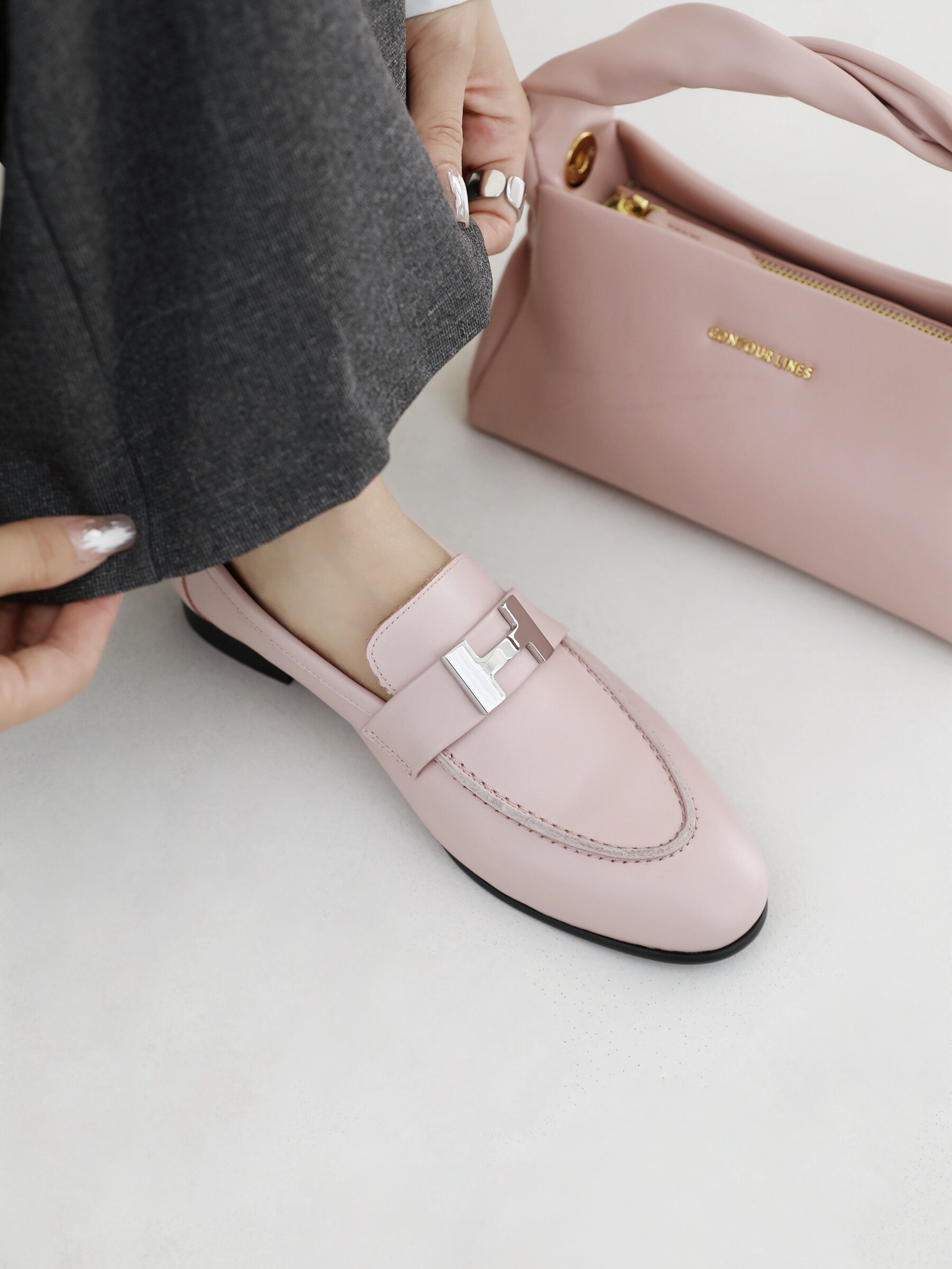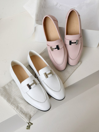 Inking Pot彭姐新款低跟圆头真皮单鞋乐福懒人鞋清新粉平跟皮鞋女