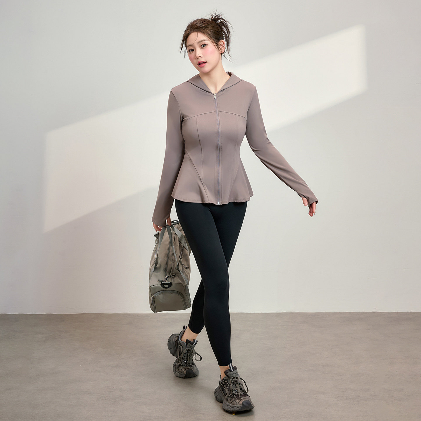秋冬大码女瑜伽显瘦中长款外套