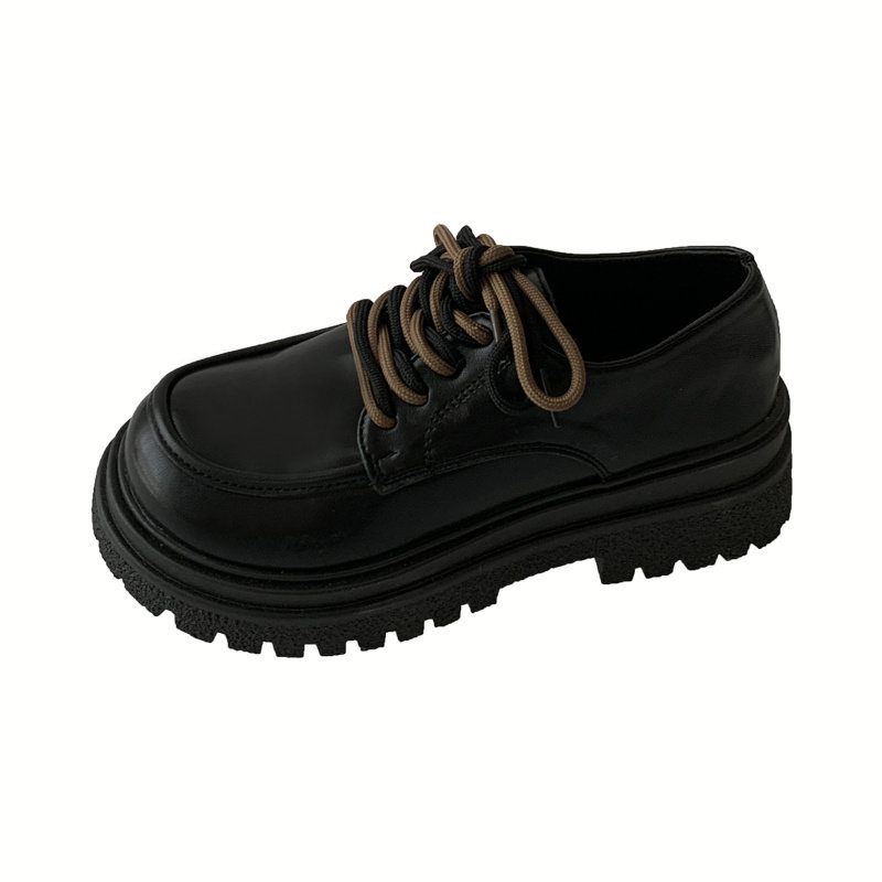 配裙子小皮鞋女2024年春季新款复古英伦风百搭圆头厚底增高单鞋子