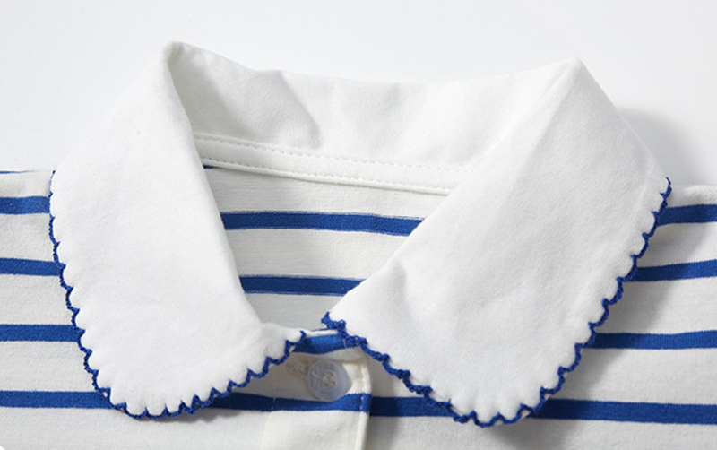 翻领可爱短袖条纹T恤纯棉