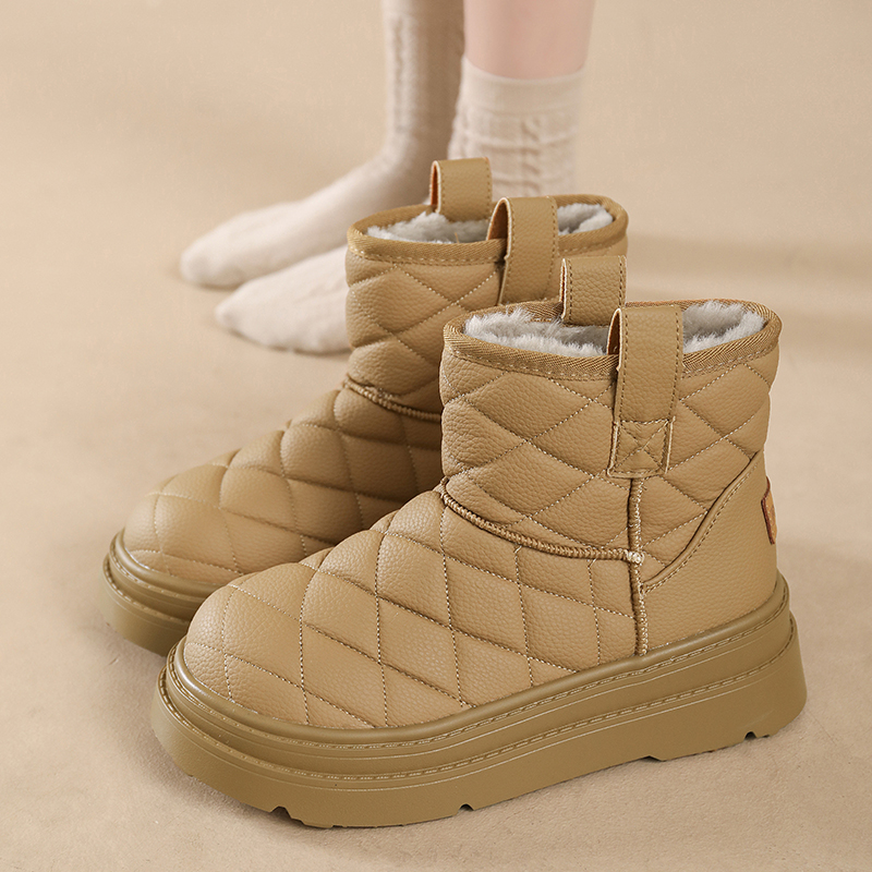 时尚通勤加绒加厚厚底雪地靴女款2025新款冬季保暖增高防滑面包鞋