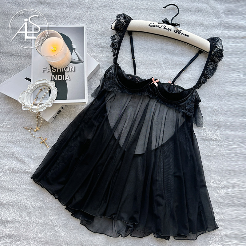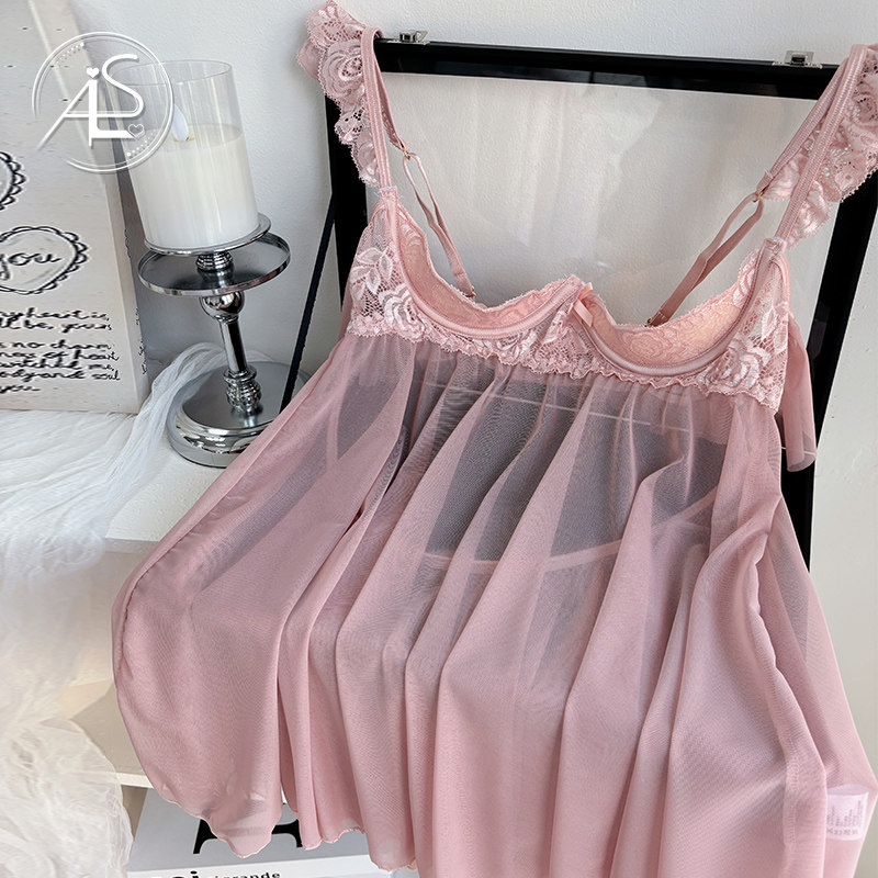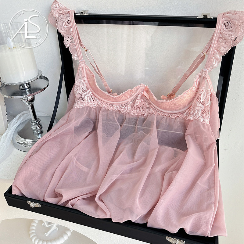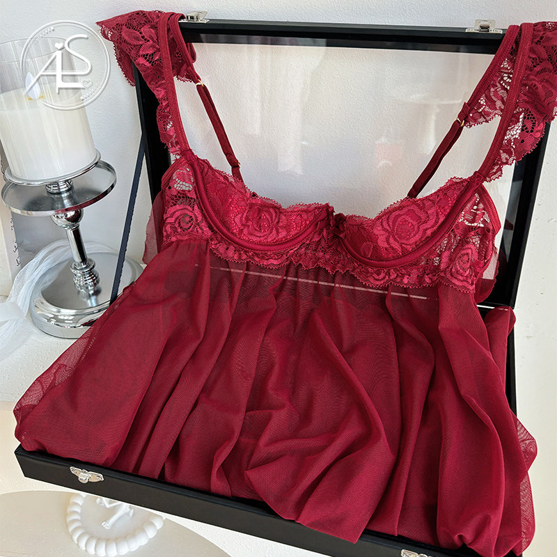 性感睡衣女小胸聚拢显大带胸垫四分之一杯轻熟御姐蕾丝吊带睡裙
