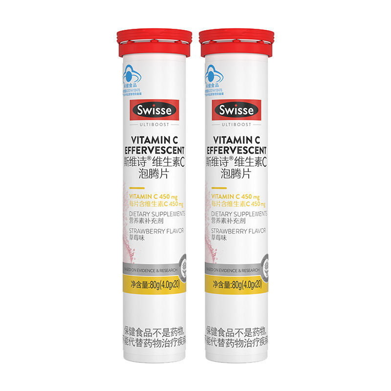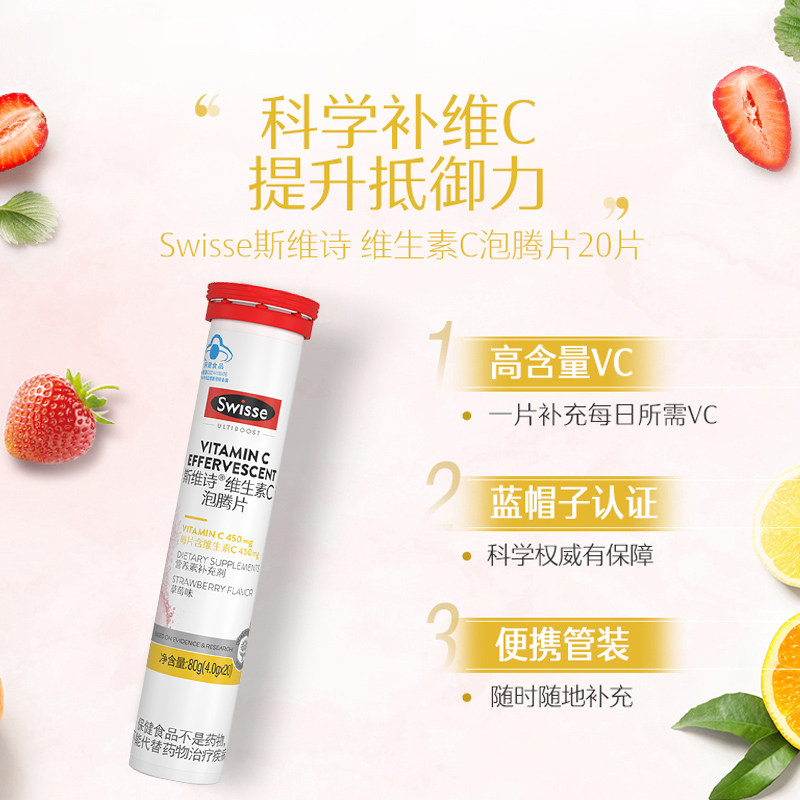 Swisse斯维诗维生素C泡腾片高浓度VC草莓味20片*2支补充维C