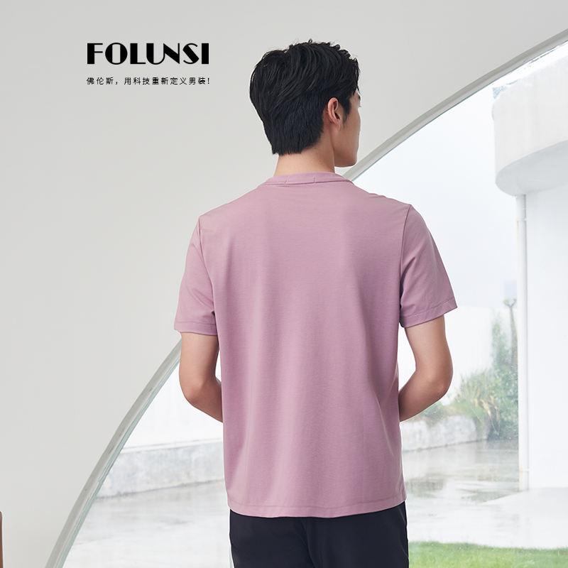 佛伦斯folunsi男士t恤短袖男2024夏季男装商务休闲棉弹透气半袖