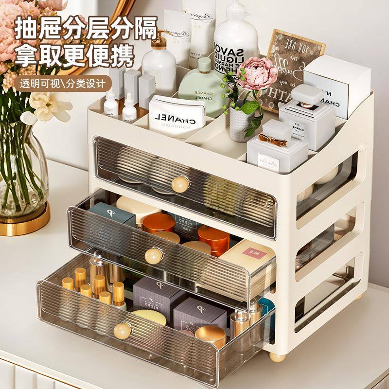 桌面收纳盒文件学生文具化妆品整理置物架抽屉式办公室透明收纳柜