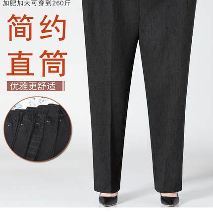 中老年女春秋冬装直筒外穿长裤妈妈加绒加肥大码休闲高腰裤子奶奶