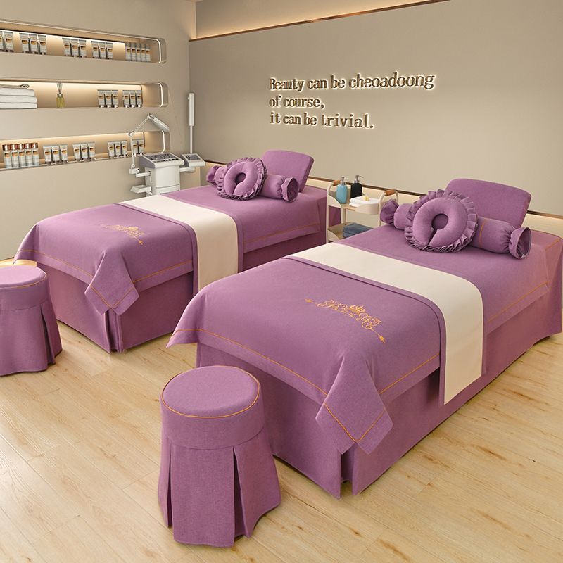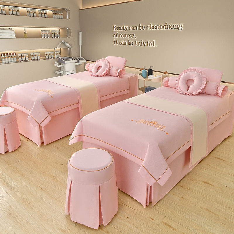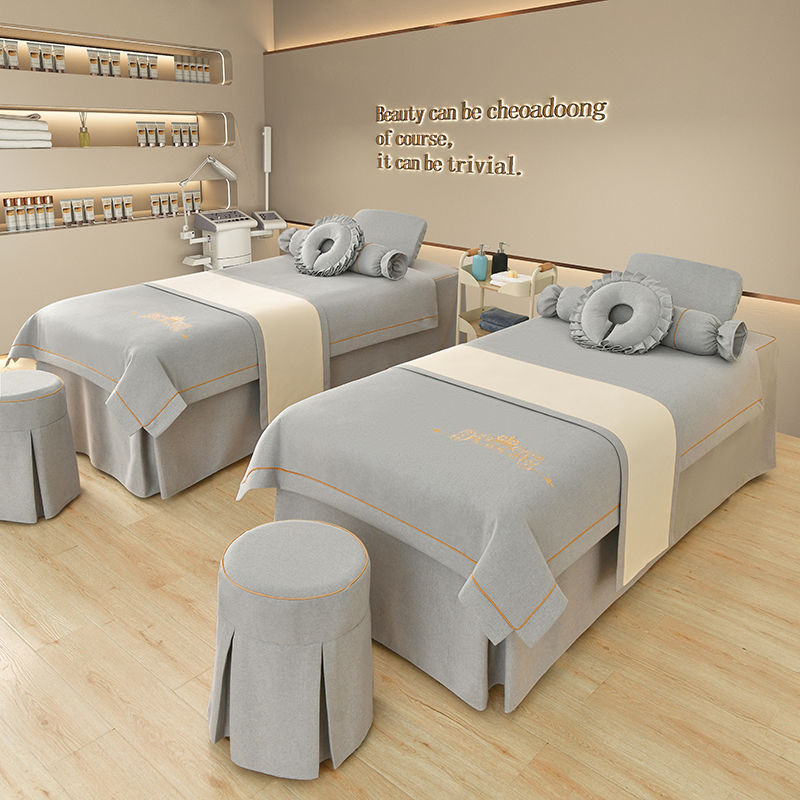 美容院专用高档简约美容床罩四件套按摩床套理疗床单四季洗头批发