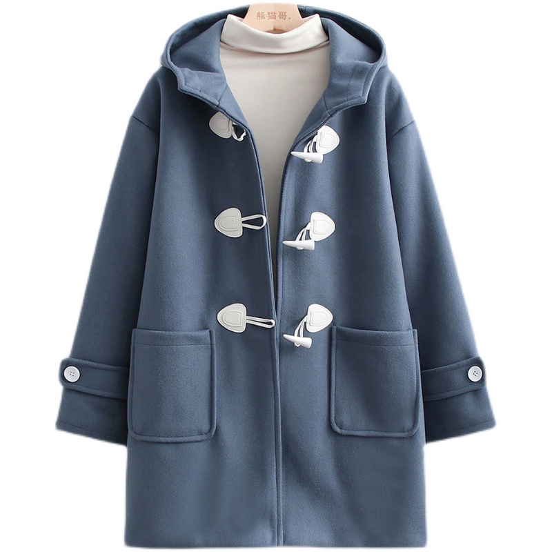 牛角扣毛呢大衣秋冬新款宽松学院风日系连帽夹棉加厚棉衣外套上衣