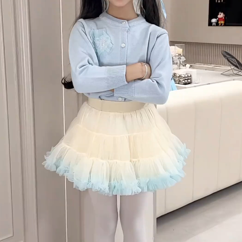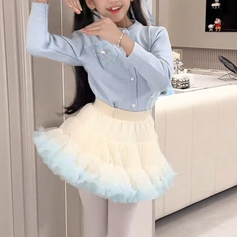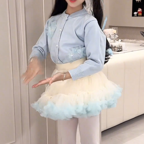 女童毛衣开衫tutu蓬蓬裙两件套2025春秋冬新款洋气针织网纱套装裙