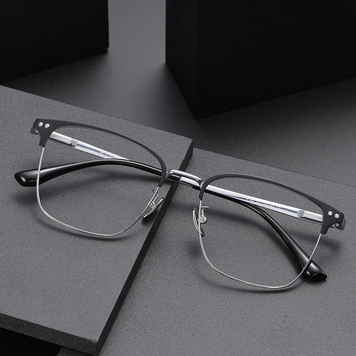 复古纯钛半框眼镜男士近视可配有度数设计师款防蓝光眉线眼睛框架