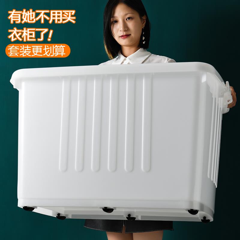 特大号收纳箱塑料加厚衣服宿舍整理箱带轮家用宝宝储物收纳盒书箱