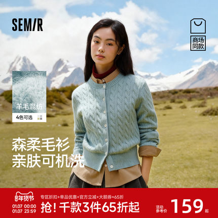商场同款|森柔森马针织开衫女冬季短款绞花内搭2025新款法式毛衫