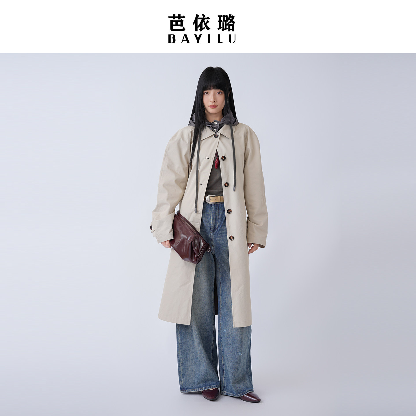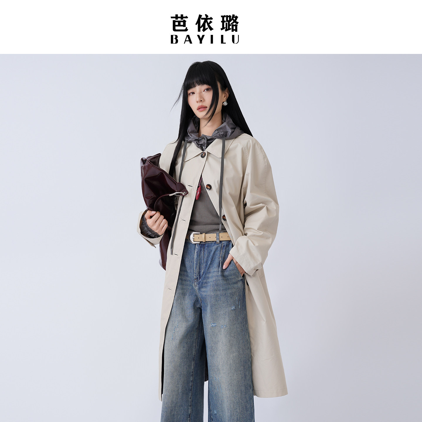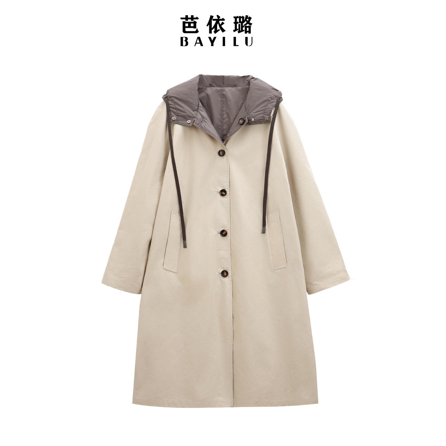 芭依璐时尚风衣2026春装新款宽松夹克连帽大衣上衣休闲风衣外套女