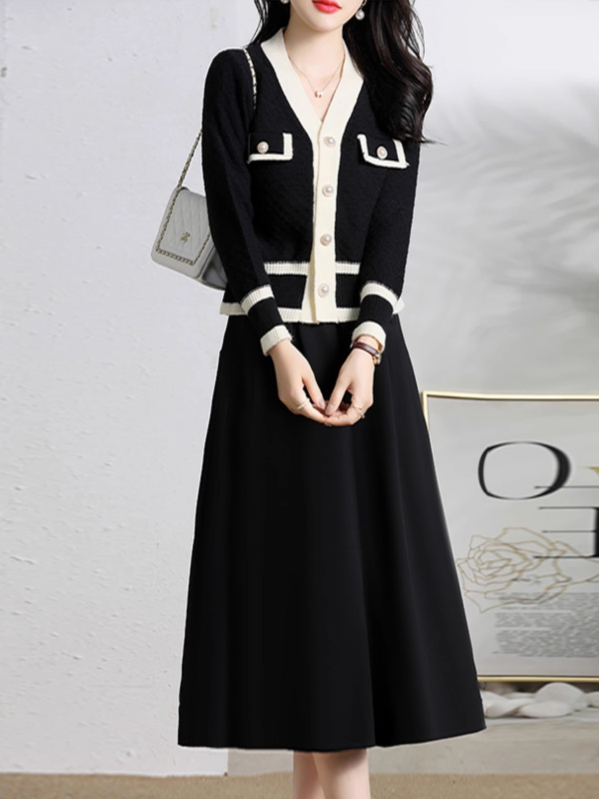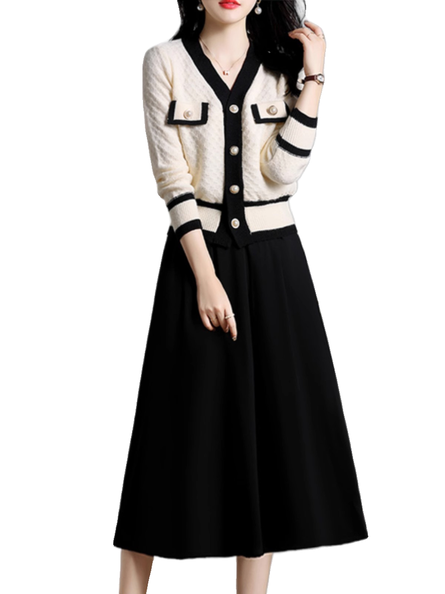 正品清仓新款专柜外贸两件套连衣裙女春季洋气小香风长袖套装裙子